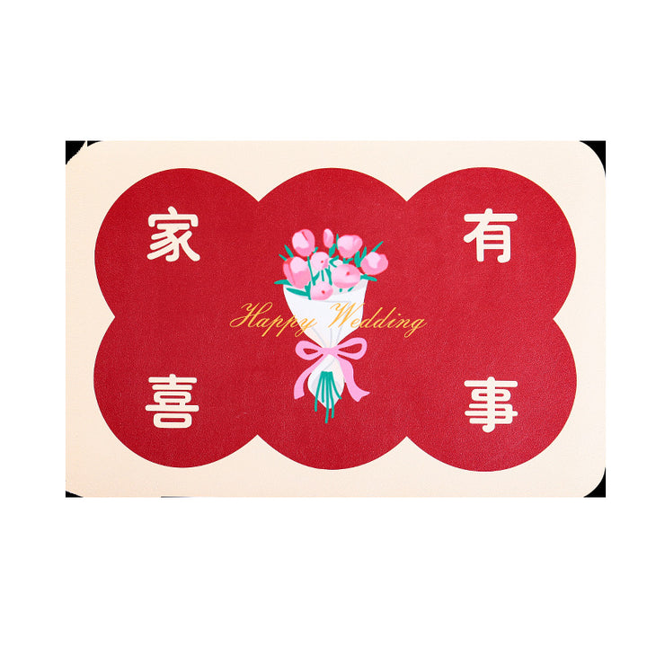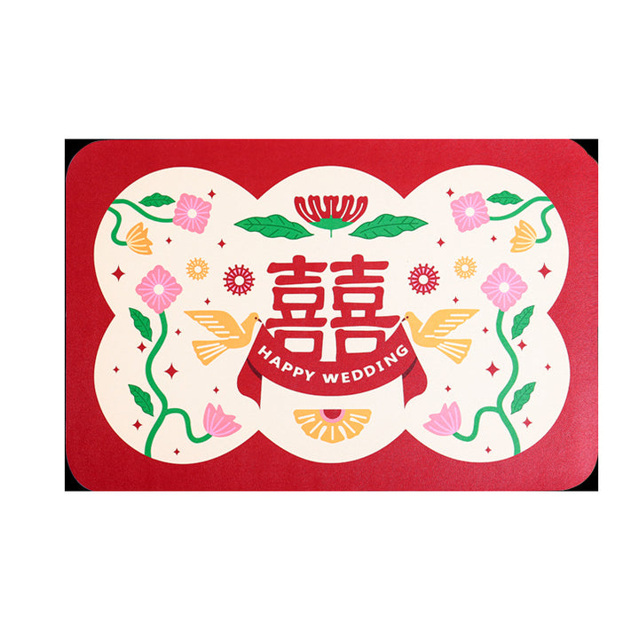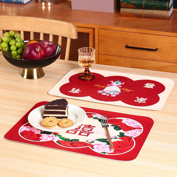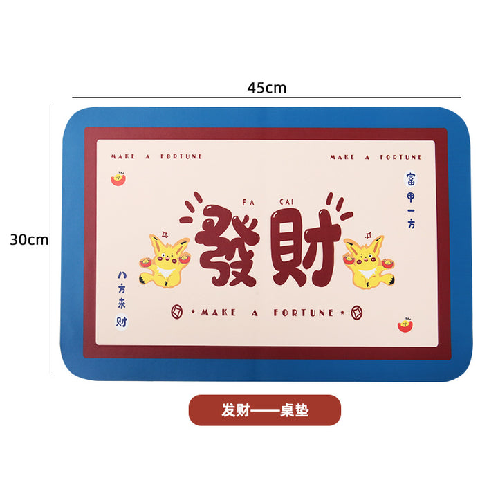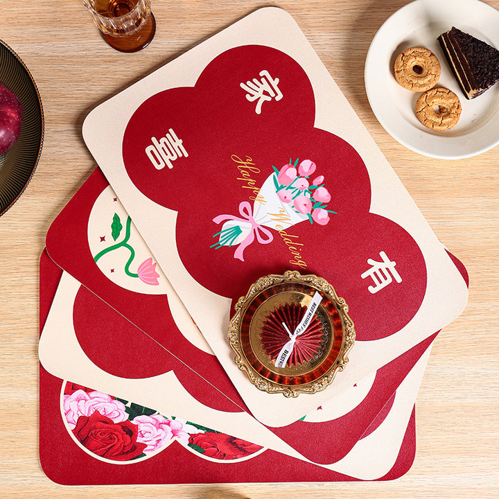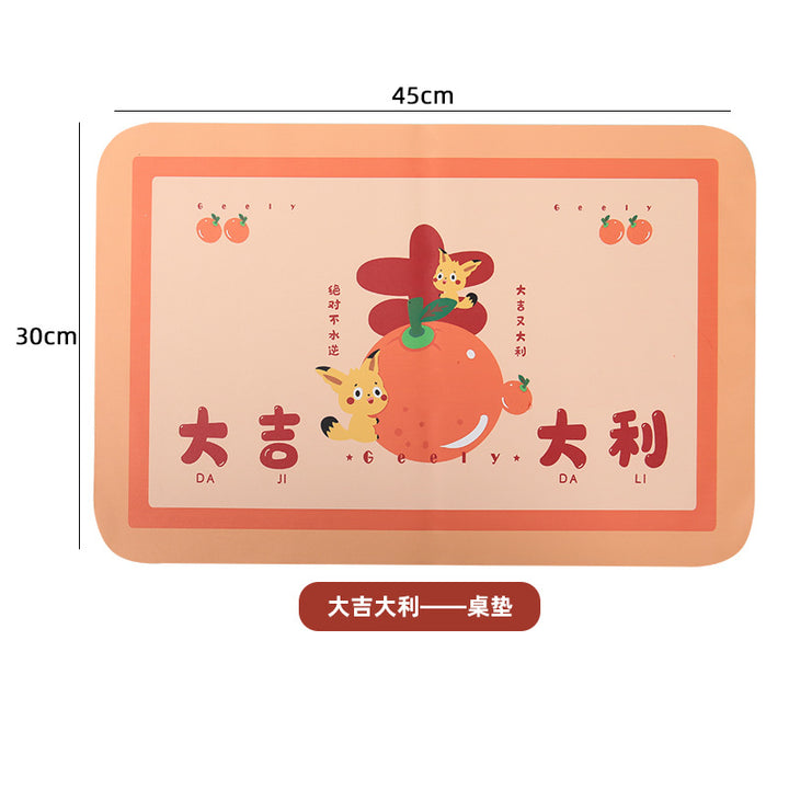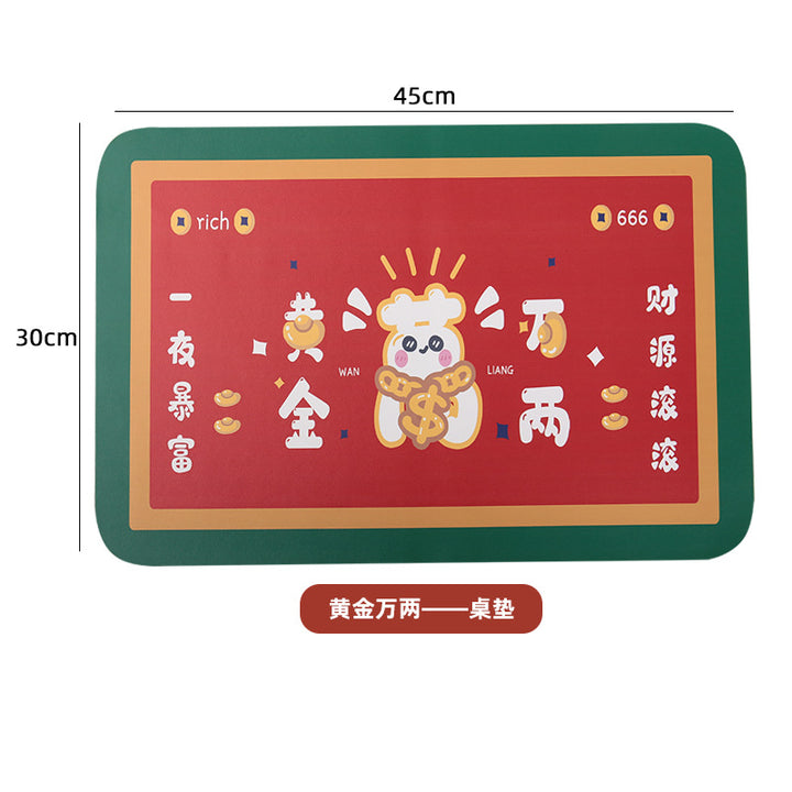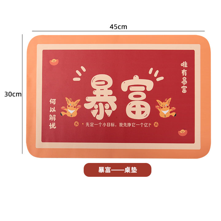 New Year's new thermal insulation pad thickened waterproof and non-slip rounded corner leather festive event auspicious dining table mat coaster bo...