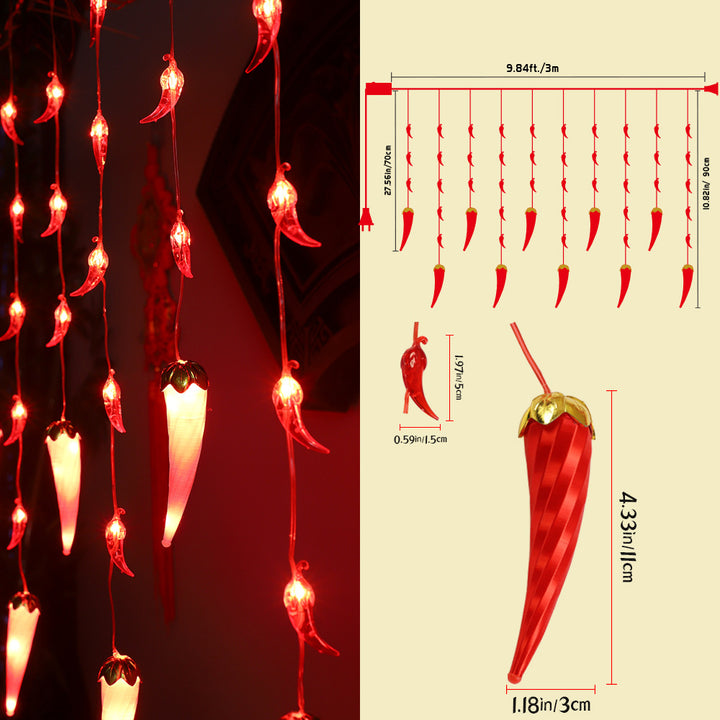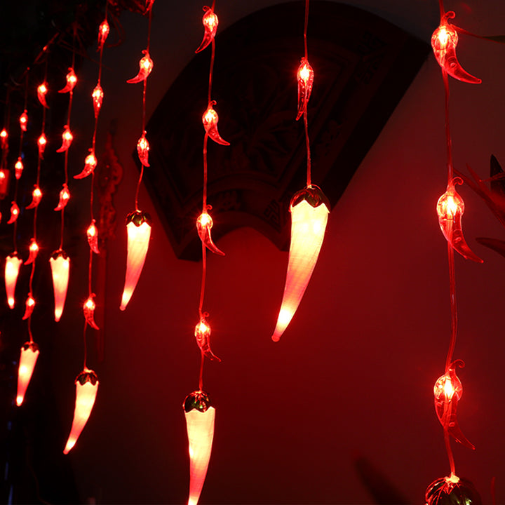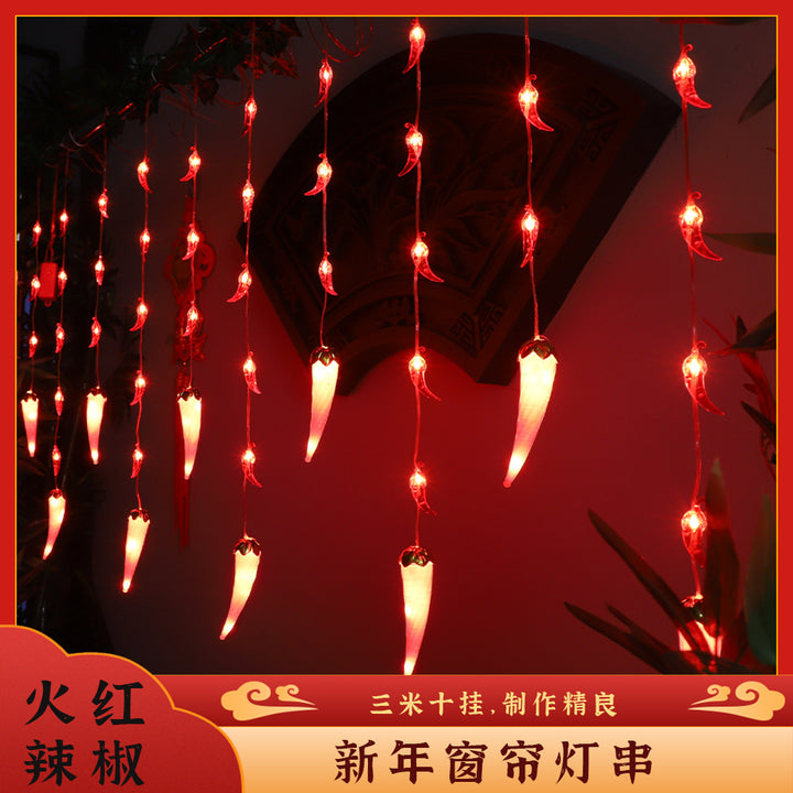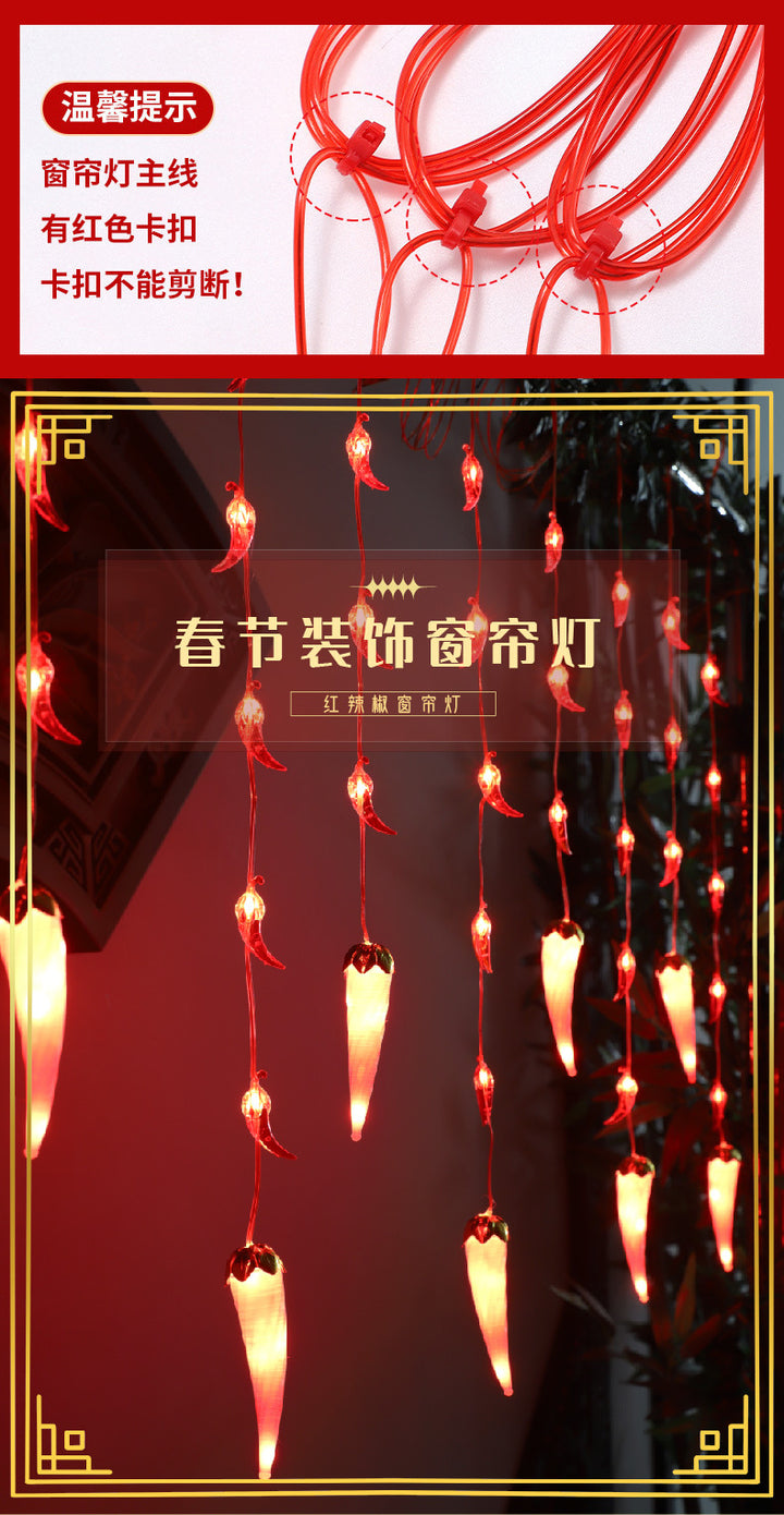 New Year's red pepper curtain light, indoor window decoration Spring Festival festive red pep...