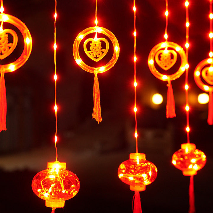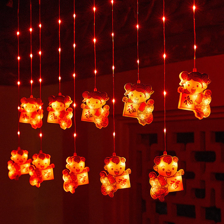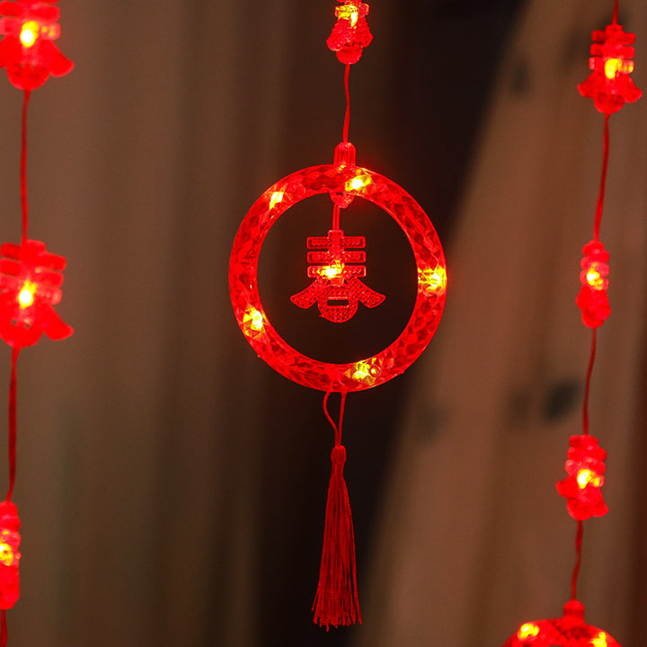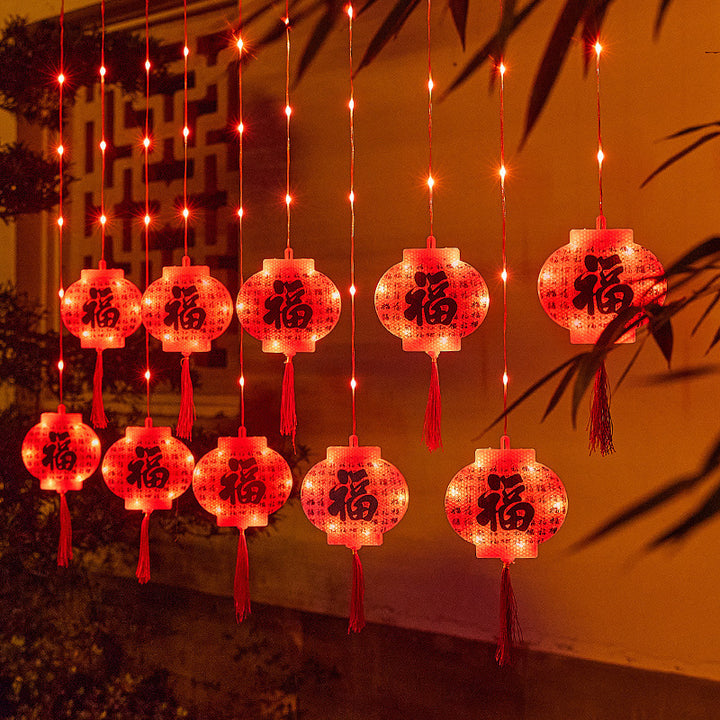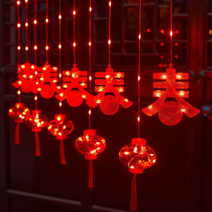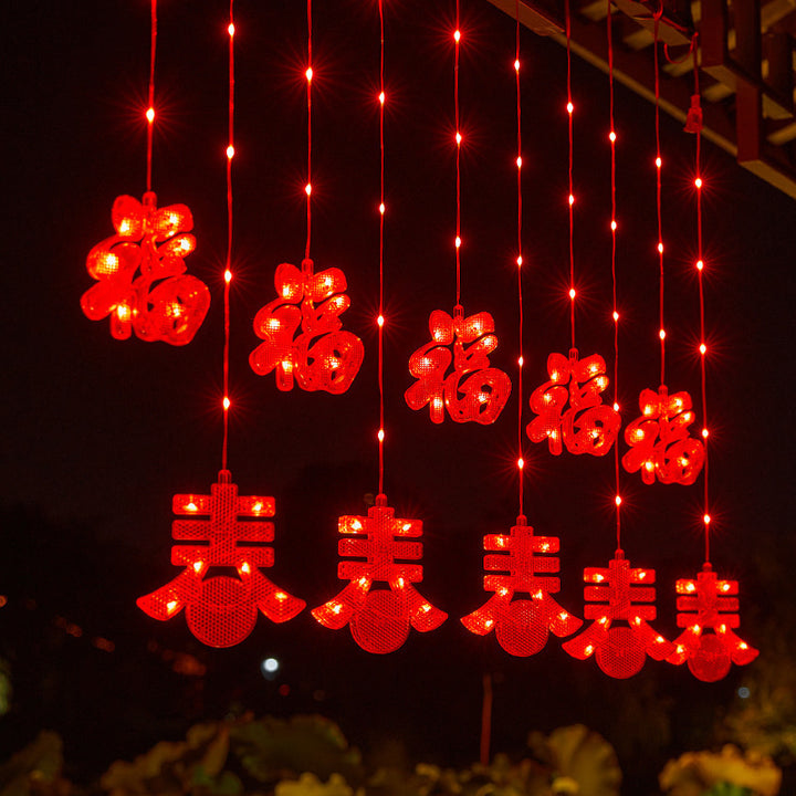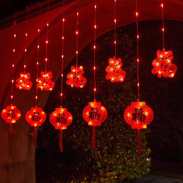 New Year's Spring Festival blessing character curtain lights Lantern Festival day window arra...