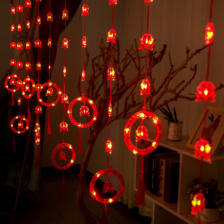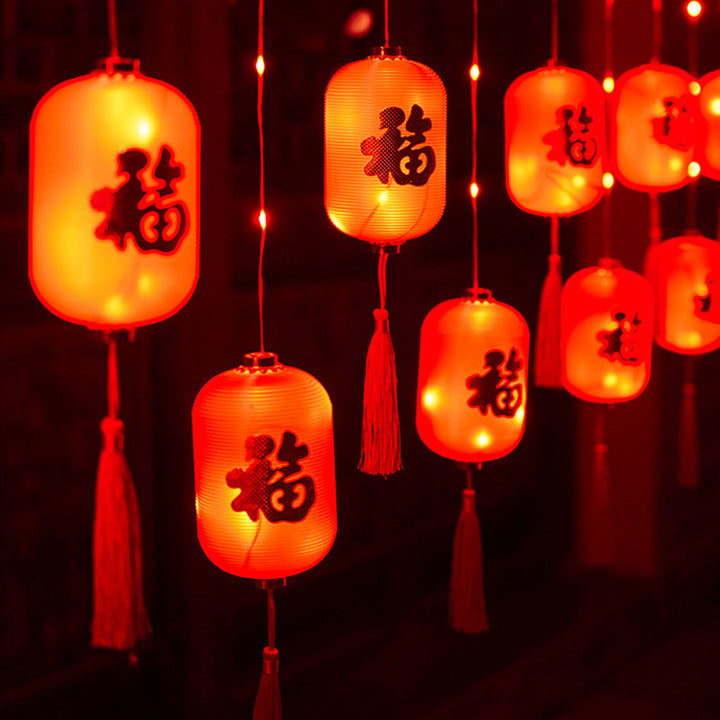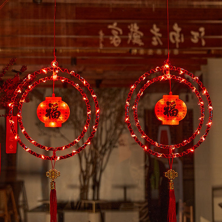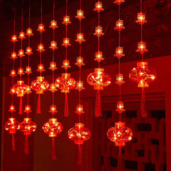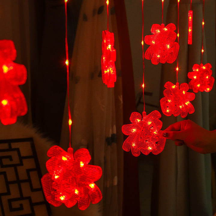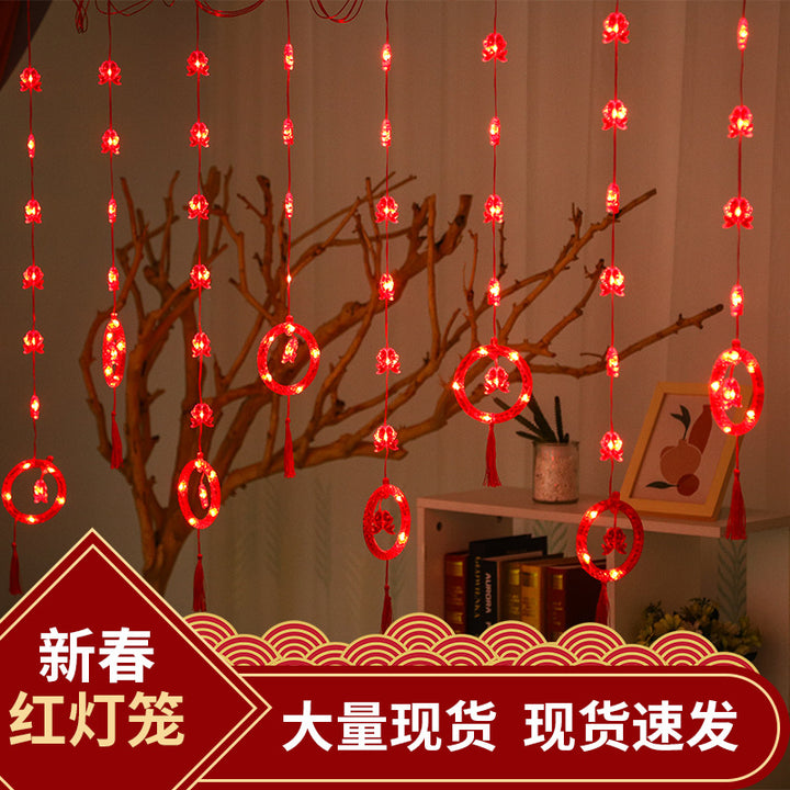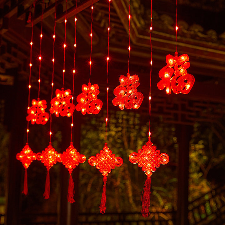 New Year's Spring Festival blessing character curtain lights Lantern Festival day window arra...