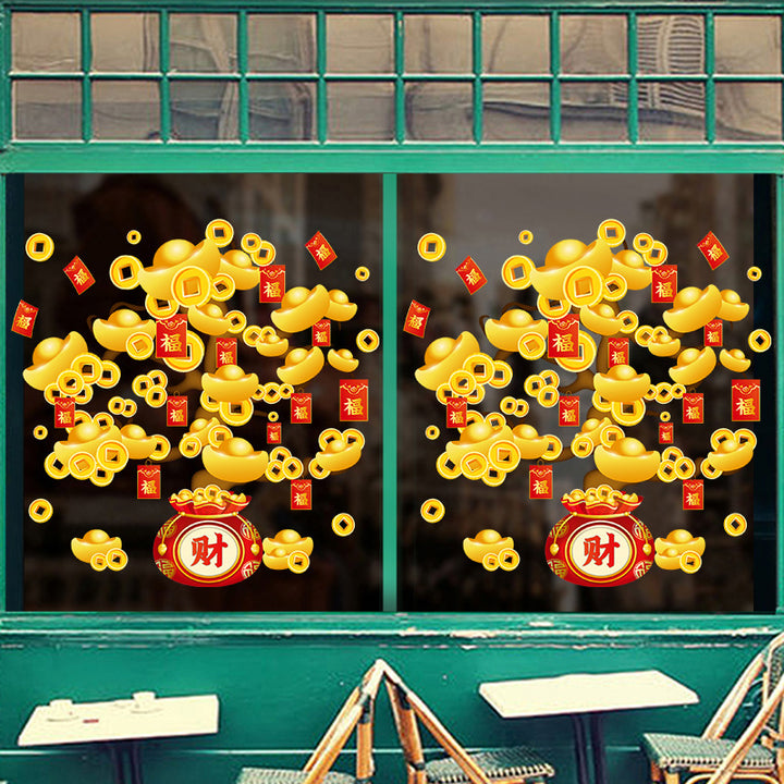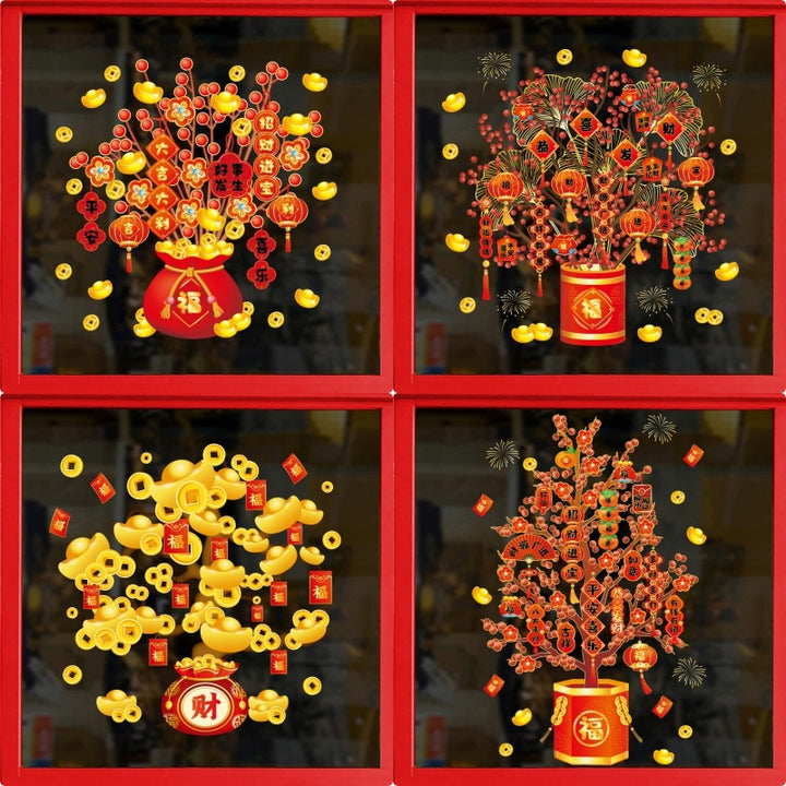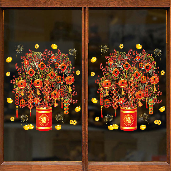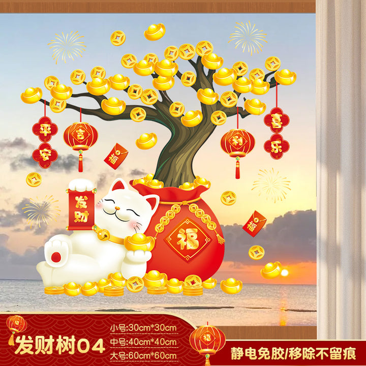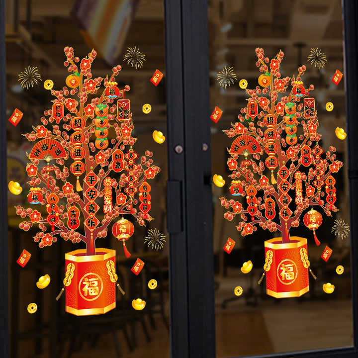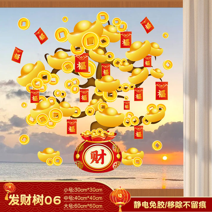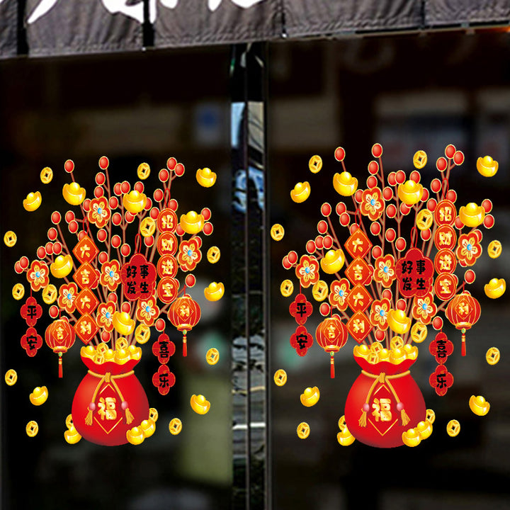 New Year's static sticker window grilles New Spring Festival decoration Fu character fortune tree lucky bag kitchen glass sticker no glue