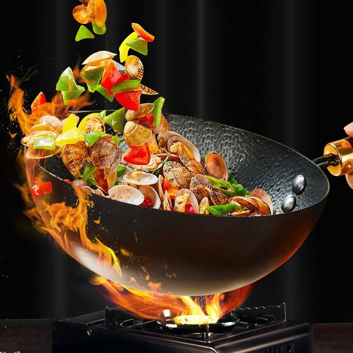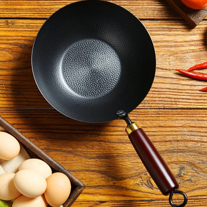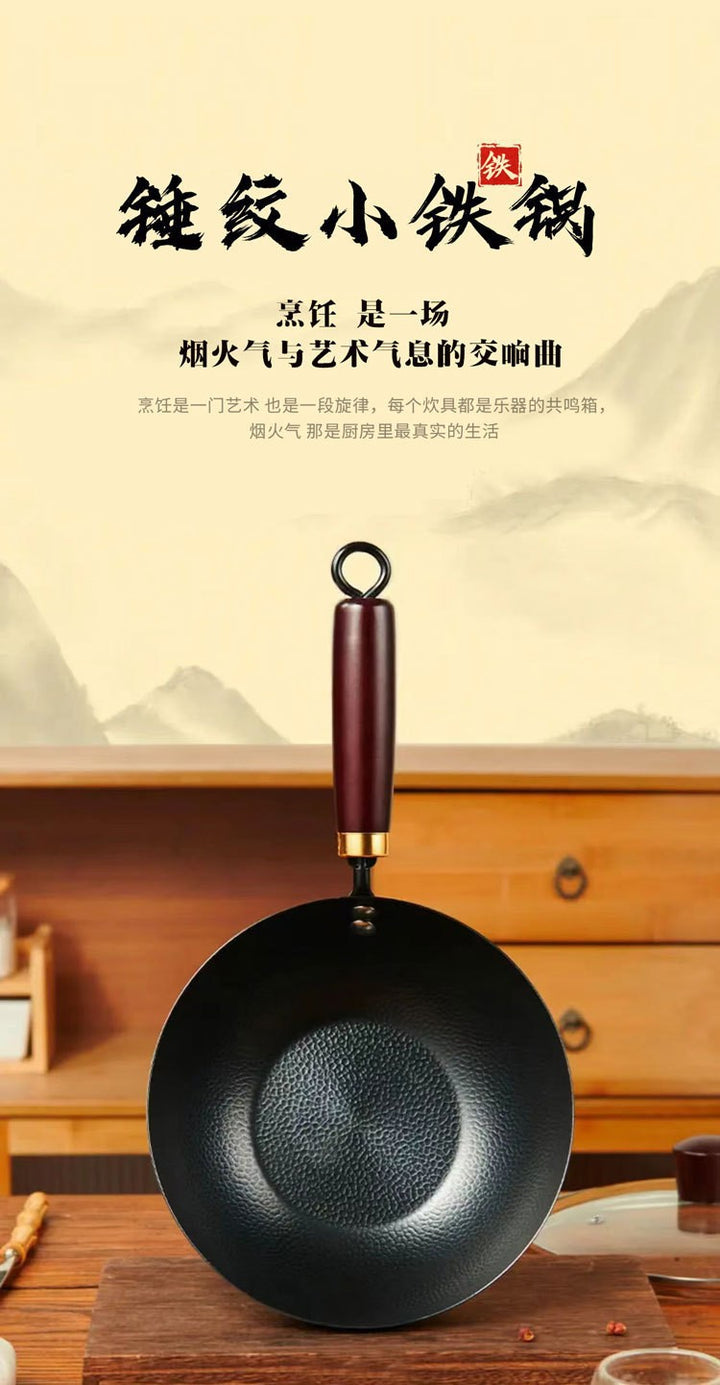 New Zhangqiu handmade mini hammer pattern small wok iron pan household uncoated non-stick pan...