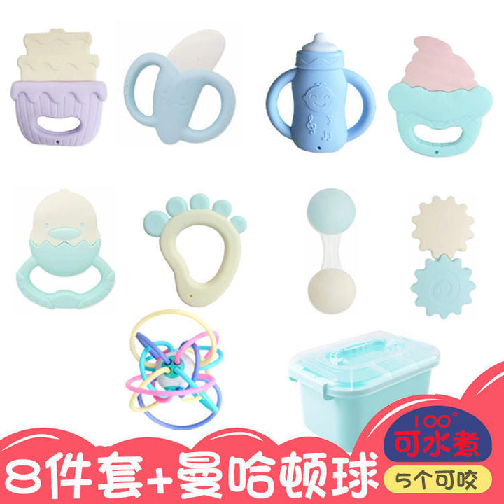 Newborn baby toys 0-3-6-12 months can bite boiled toothpaste rattle soft glue grinding stick ...
