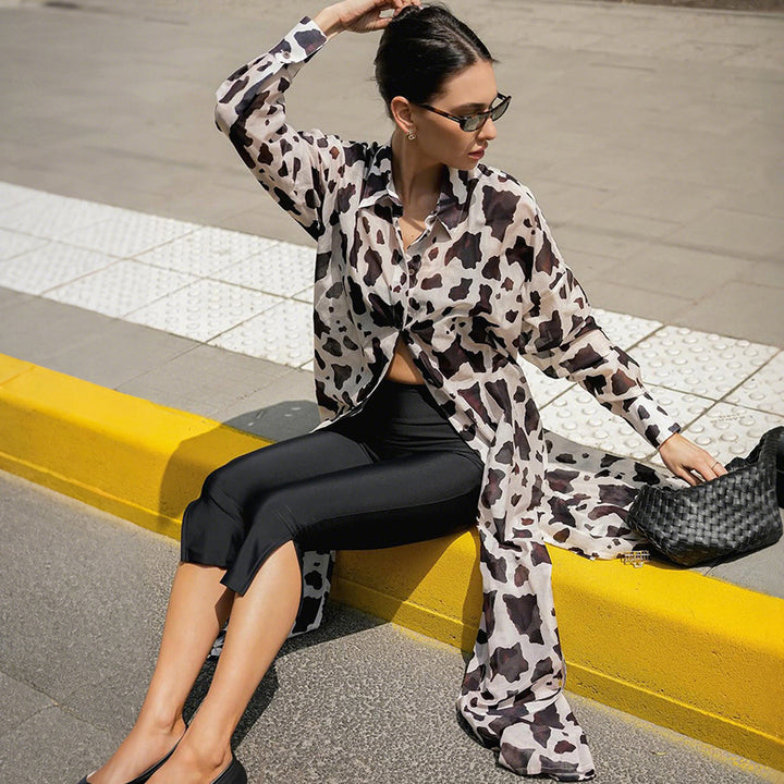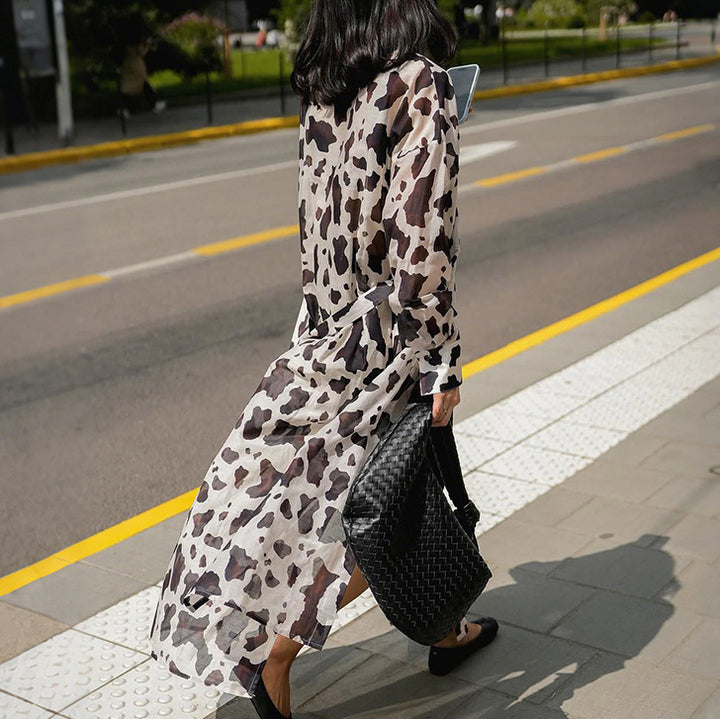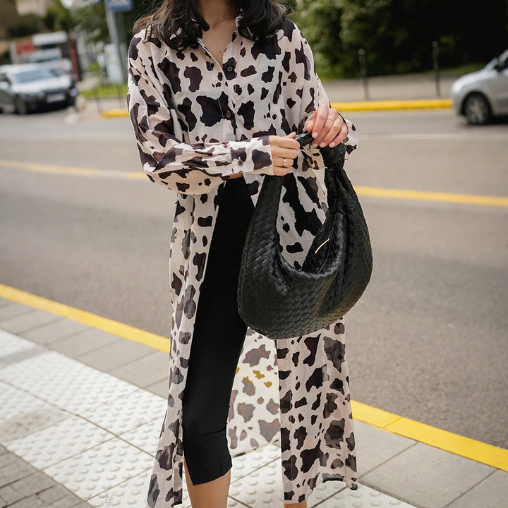 Niche design dairy cow pattern sunscreen shirt women's long wholesale trend casual chiffon long-sleeved dress