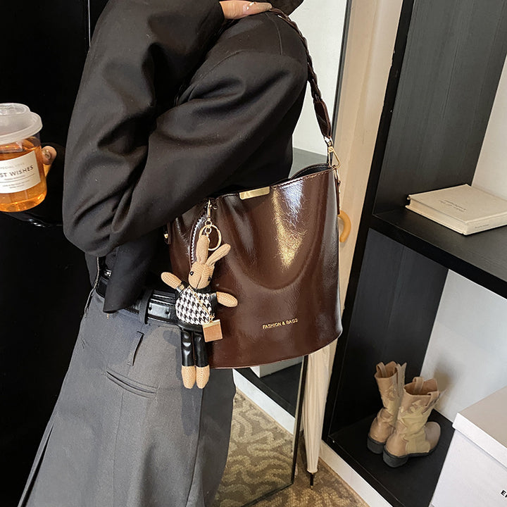 Niche design sense Internet celebrity shoulder bag women 2025 new texture bucket bag handbag messenger bag