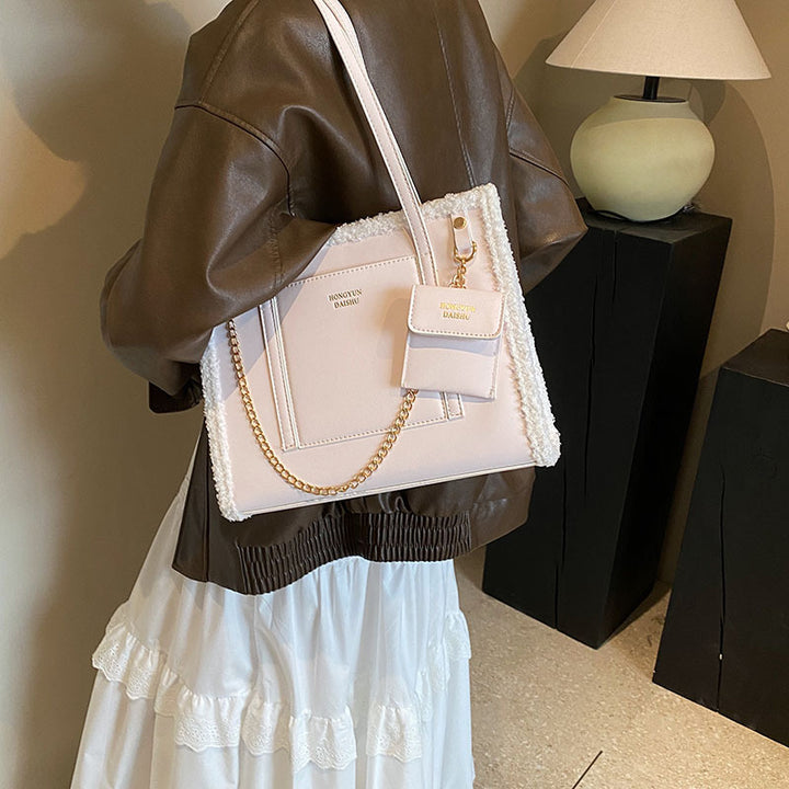 Niche lamb wool handbag women's 2025 new high-end shoulder bag large-capacity commuter tote mother and child bag