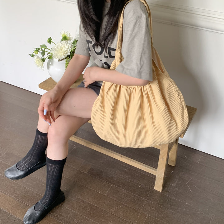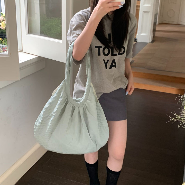 Niche nylon pleated texture shoulder bag large capacity casual versatile Korean simple tote shell handbag