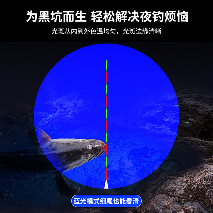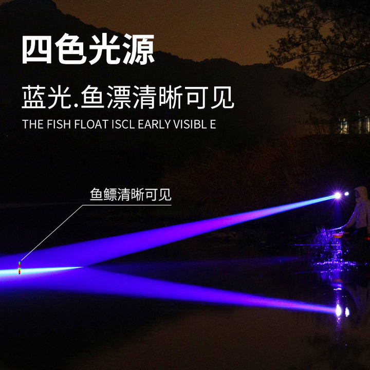 Night fishing blue light charging fishing light strong light zoom purple four-color light source waterproof fishing gear flashlight fishing light