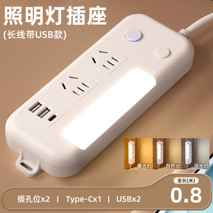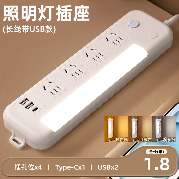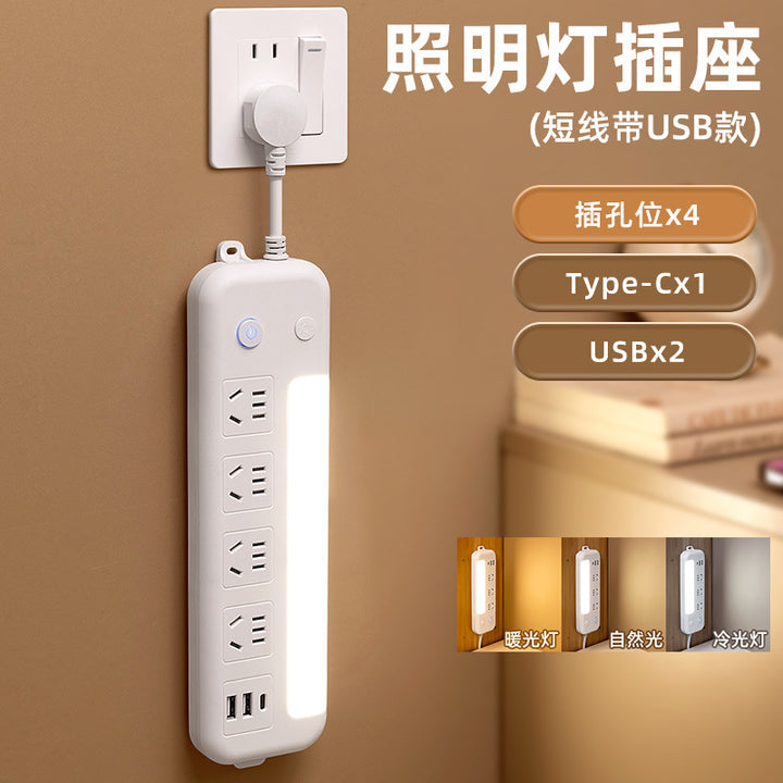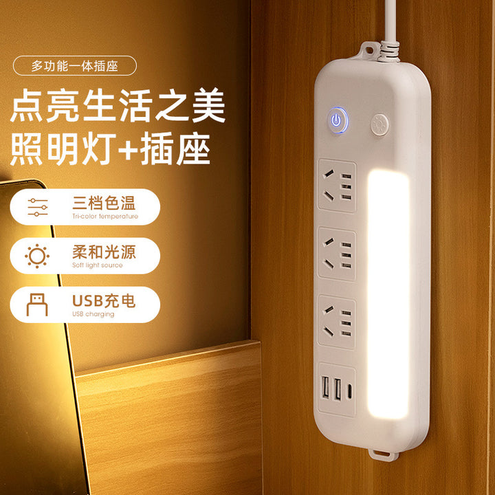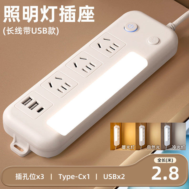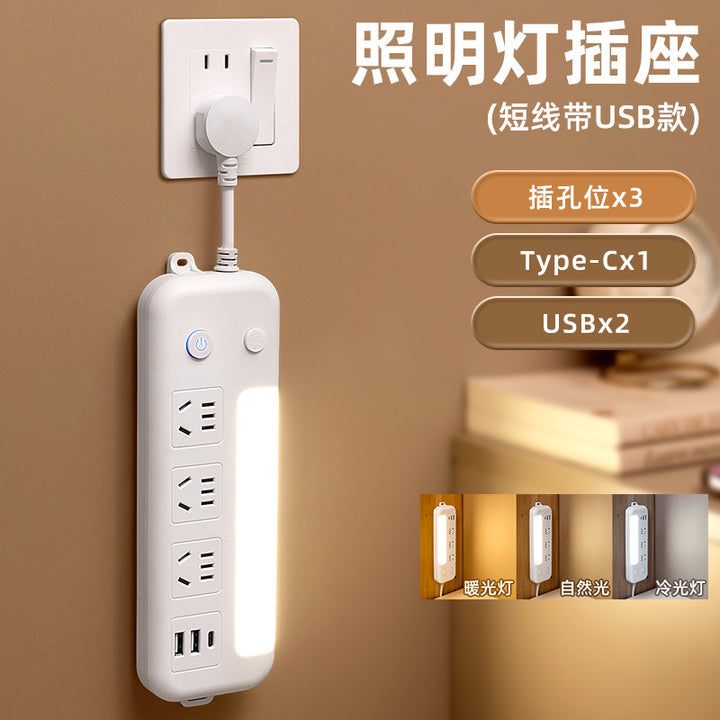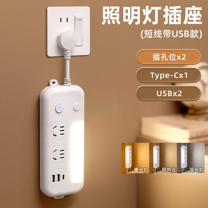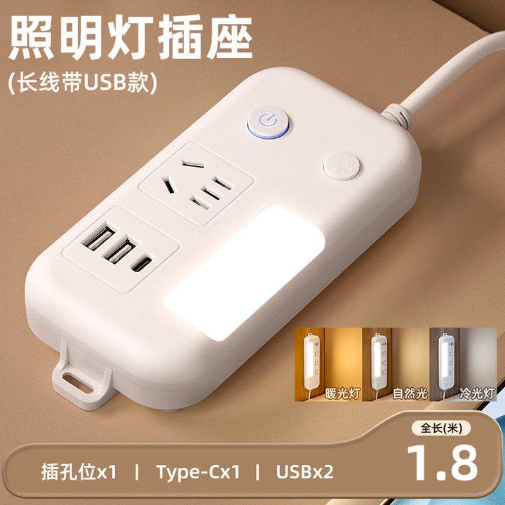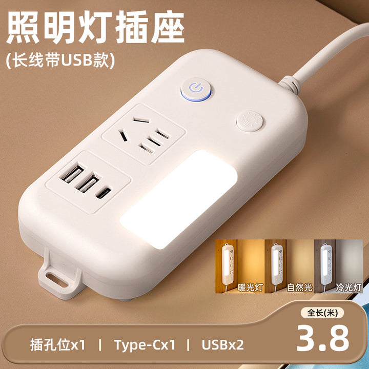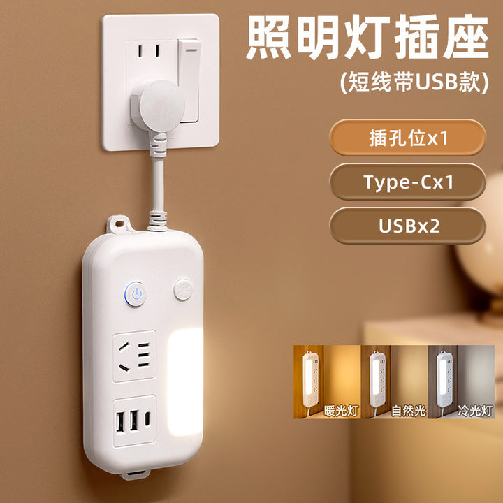 Night light plug multi-function with USB extension cable socket home office plug-in board learning charging power strip safety