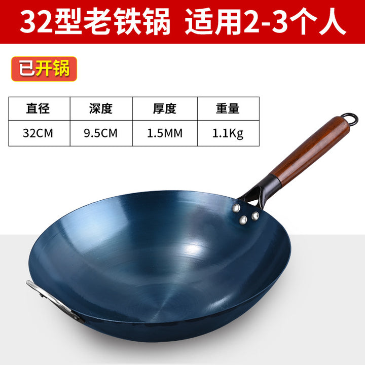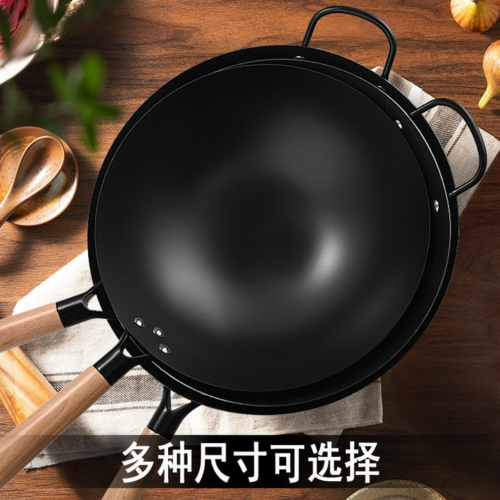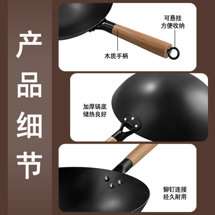 Nitride iron pan Non-stick pan Uncoated pan Household wok Handmade old-fashioned wok for kitc...