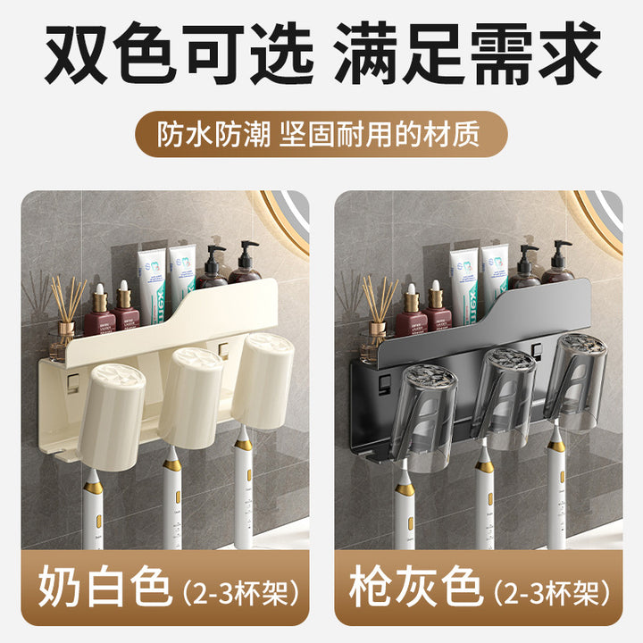 No punching bathroom toothbrush shelf shelf hanging cup light luxury wall-mounted tooth cup toothbrush hanger customization