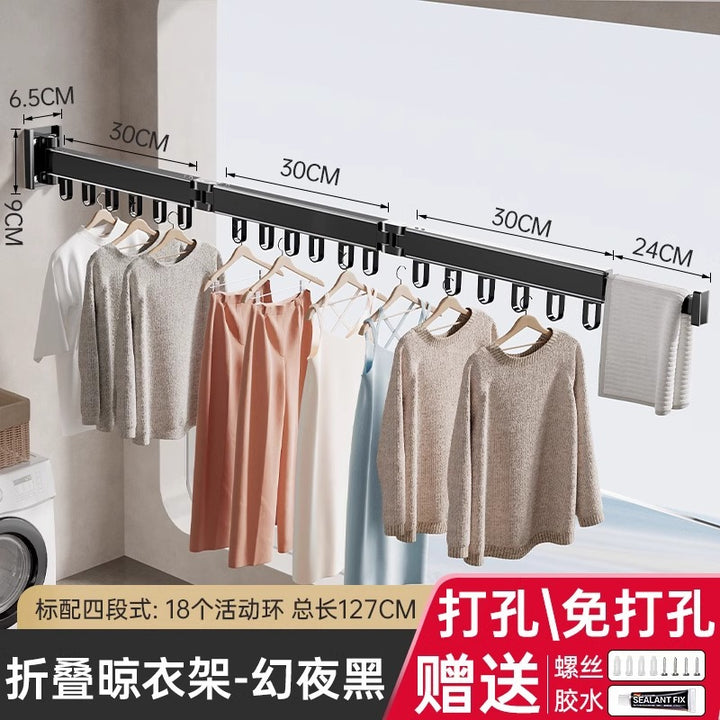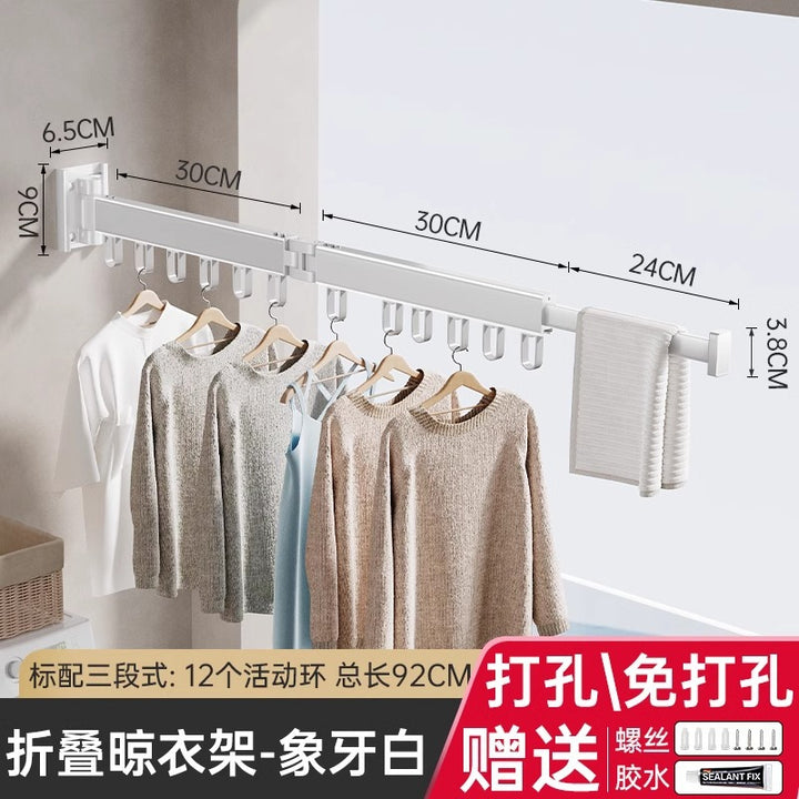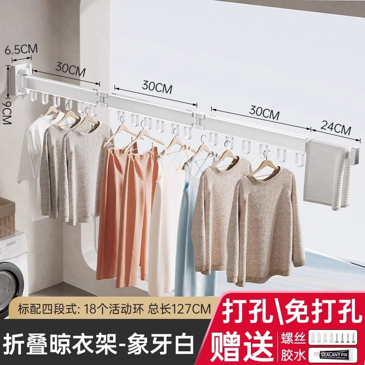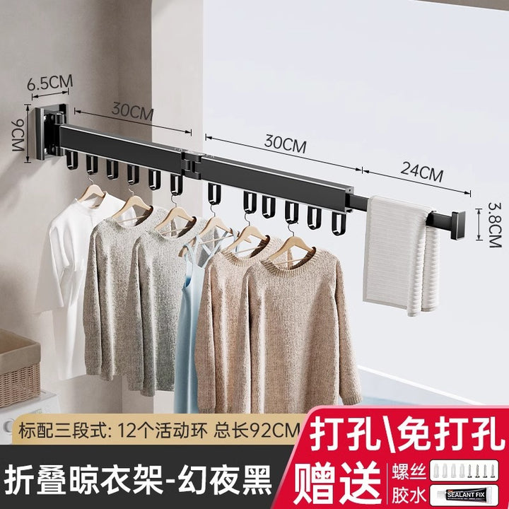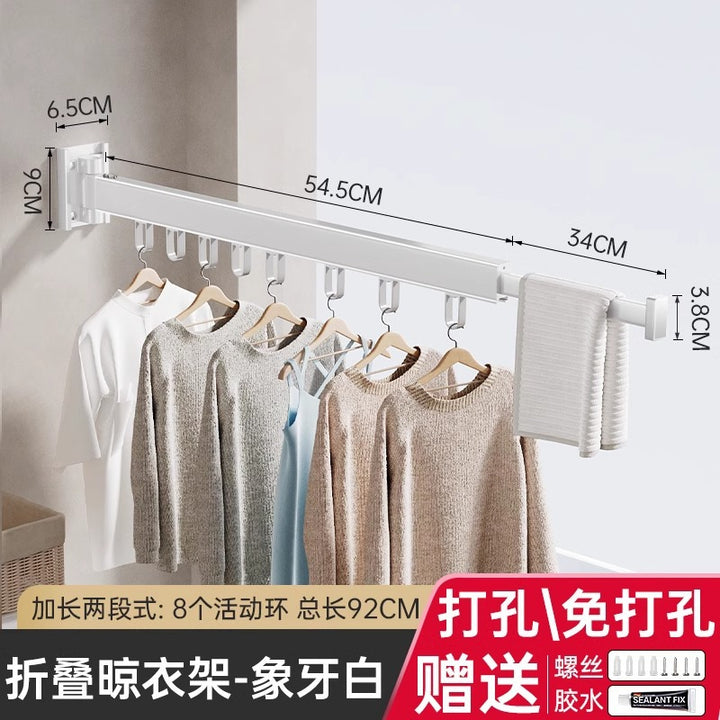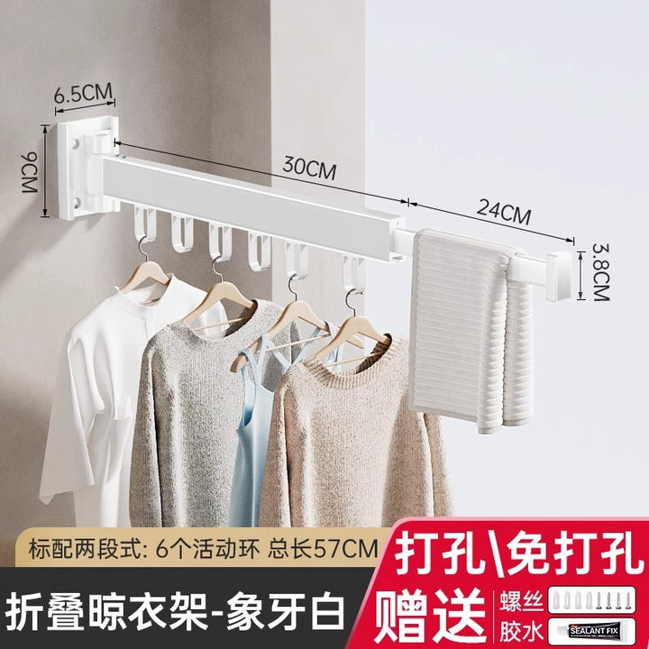 No punching, folding drying rack, wall hanging, invisible shrinking clothes rod, indoor and outdoor telescopic household balcony quilt drying artifact