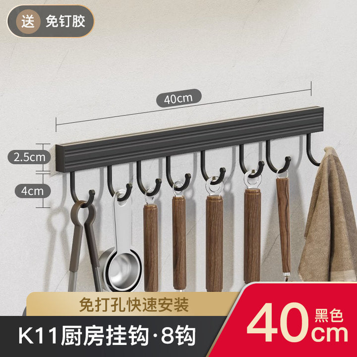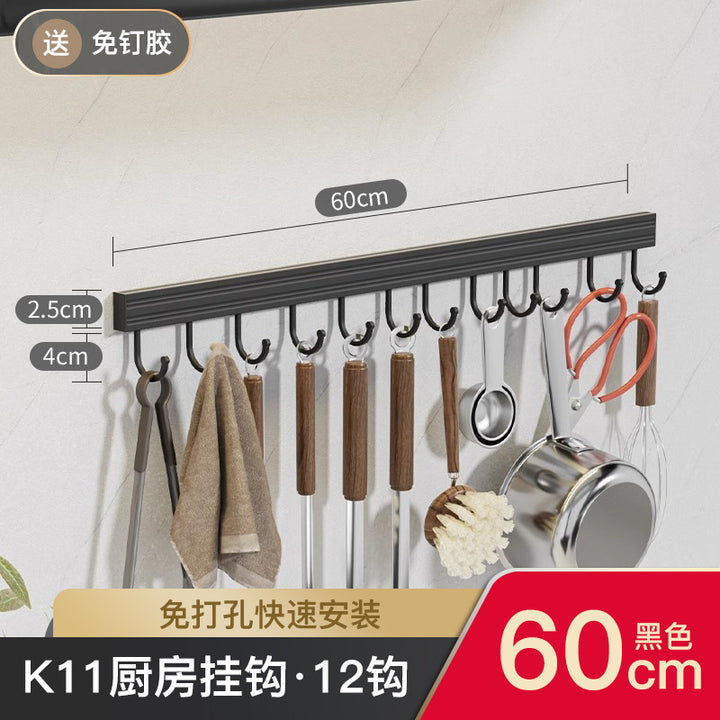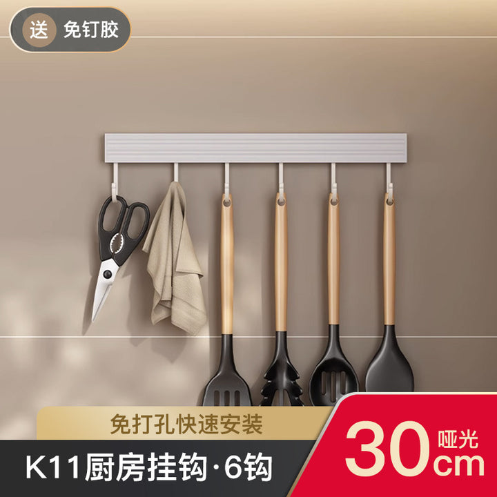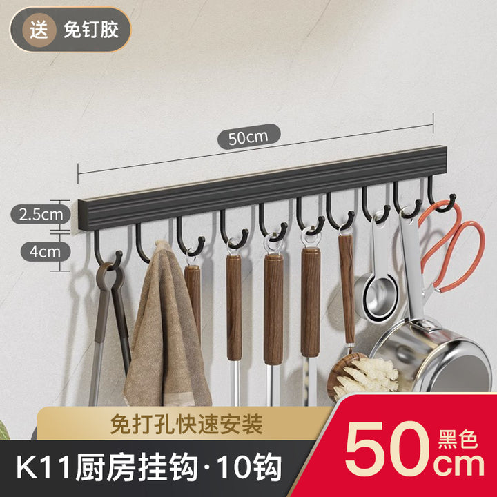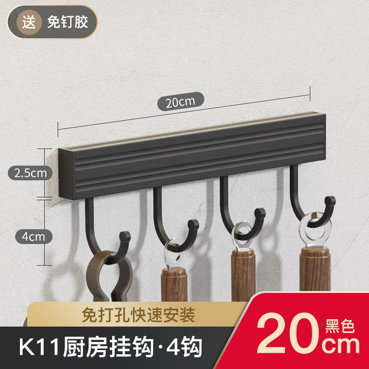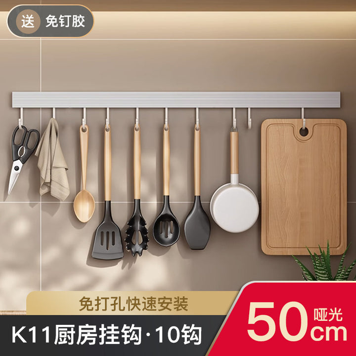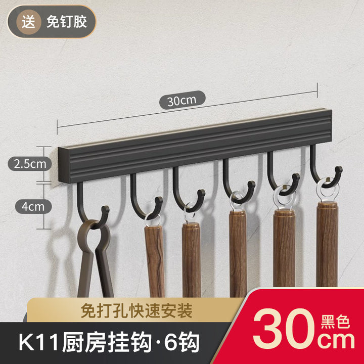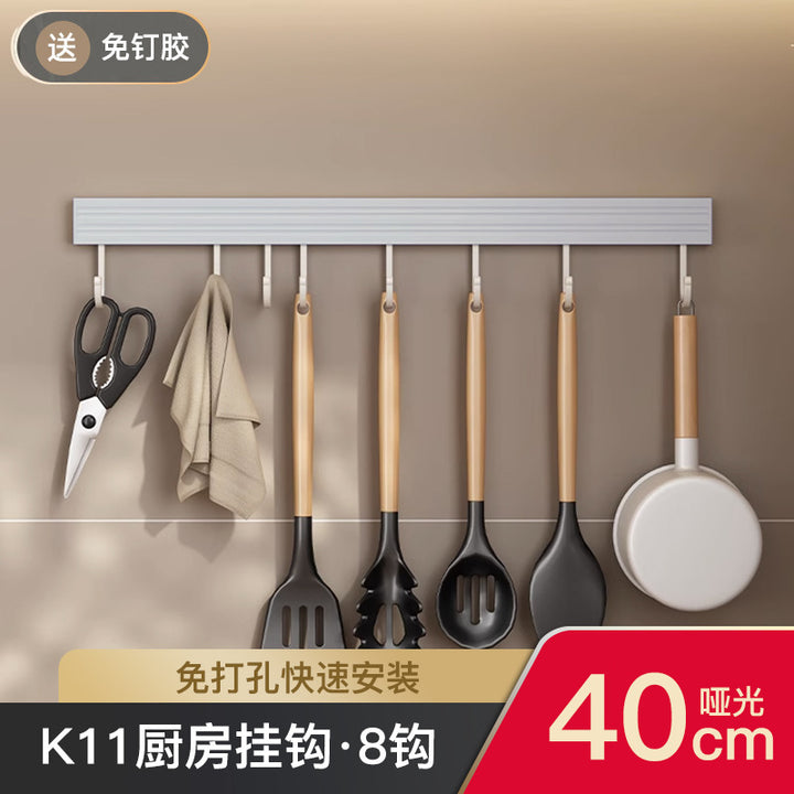 No punching kitchen hook rack hanging rod wall-mounted multi-functional kitchen utensils hanger spoon shovel rack