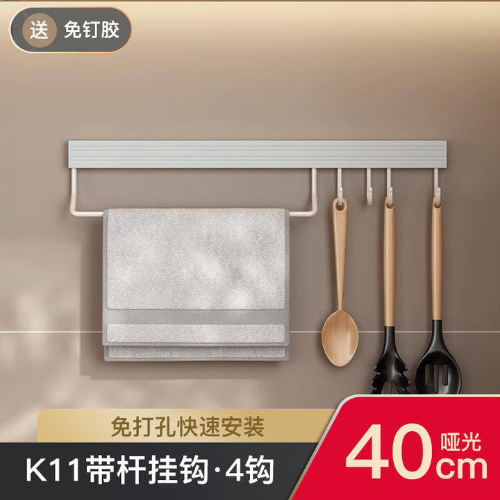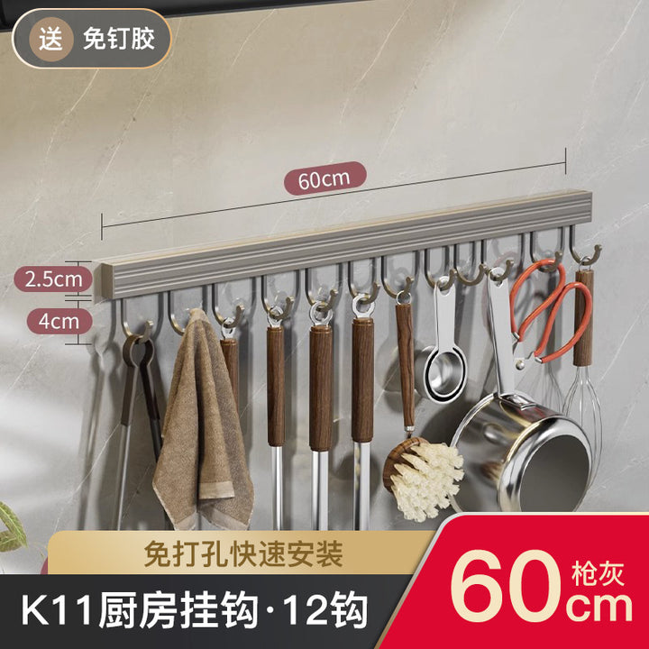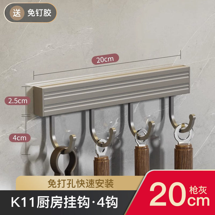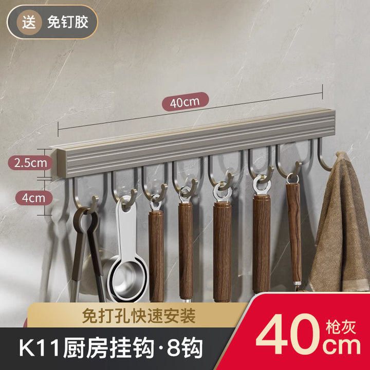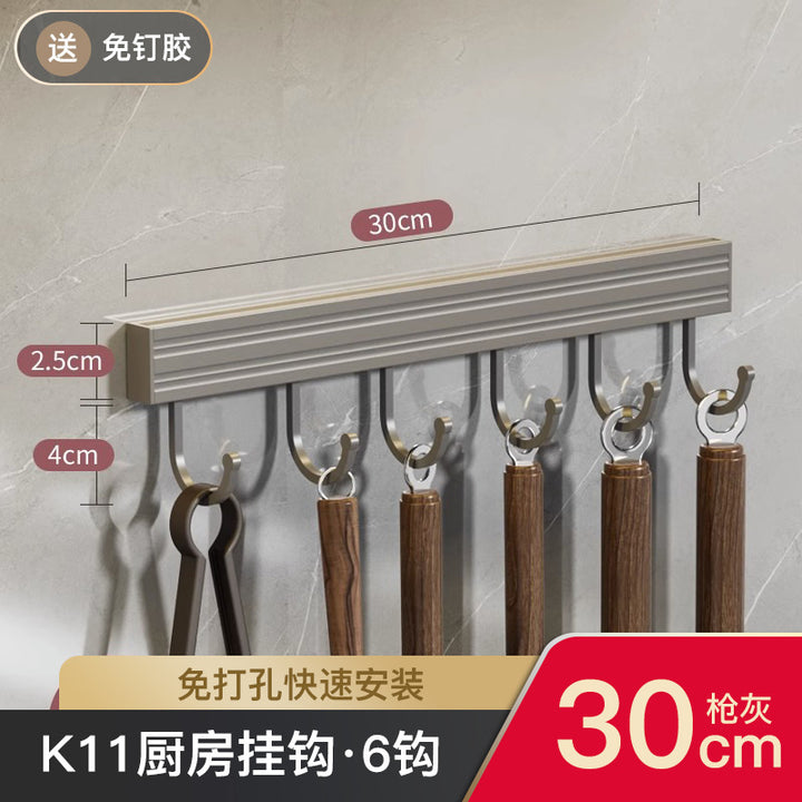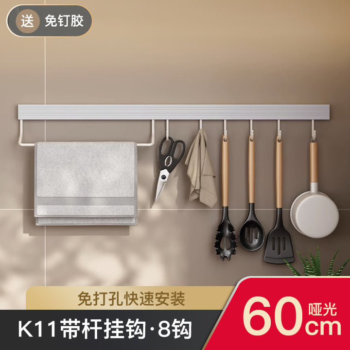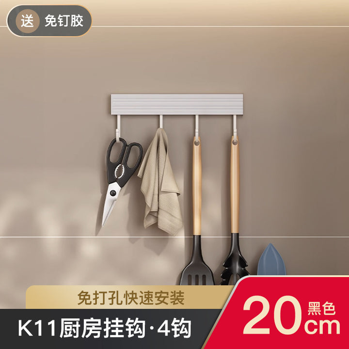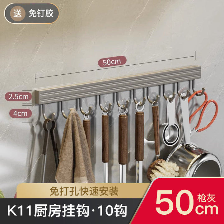 No punching kitchen hook rack hanging rod wall-mounted multi-functional kitchen utensils hanger spoon shovel rack