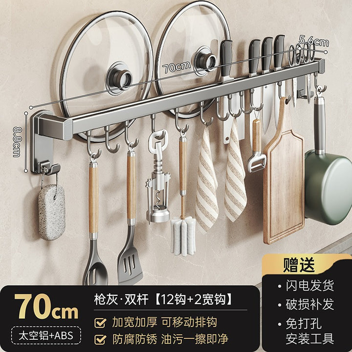 No punching kitchen hook rack hanging rod wall-mounted multi-functional kitchen utensils hanger spoon shovel storage rack