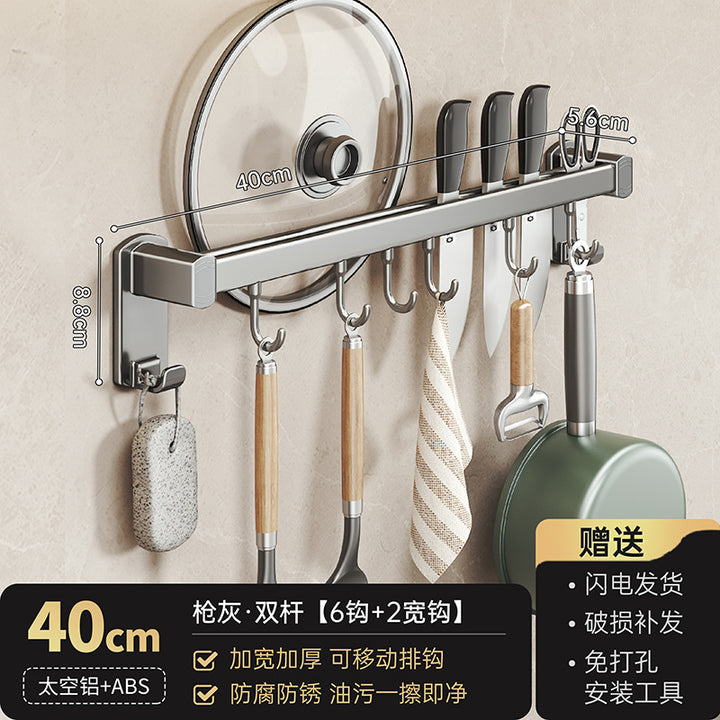 No punching kitchen hook rack hanging rod wall-mounted multi-functional kitchen utensils hanger spoon shovel storage rack