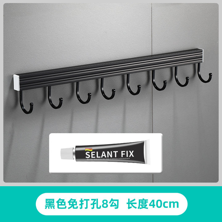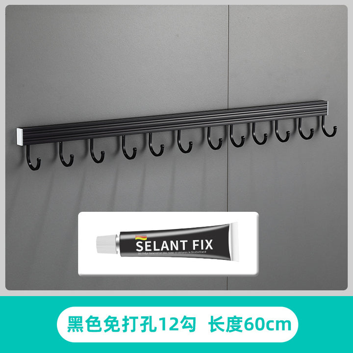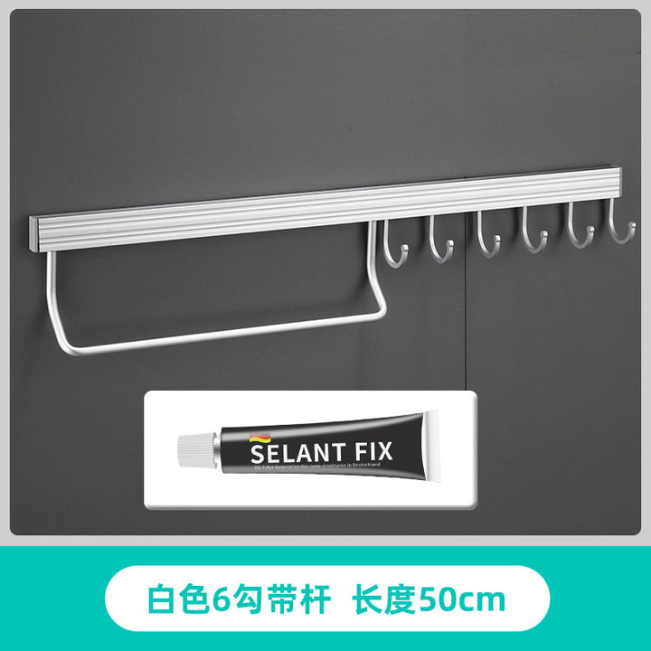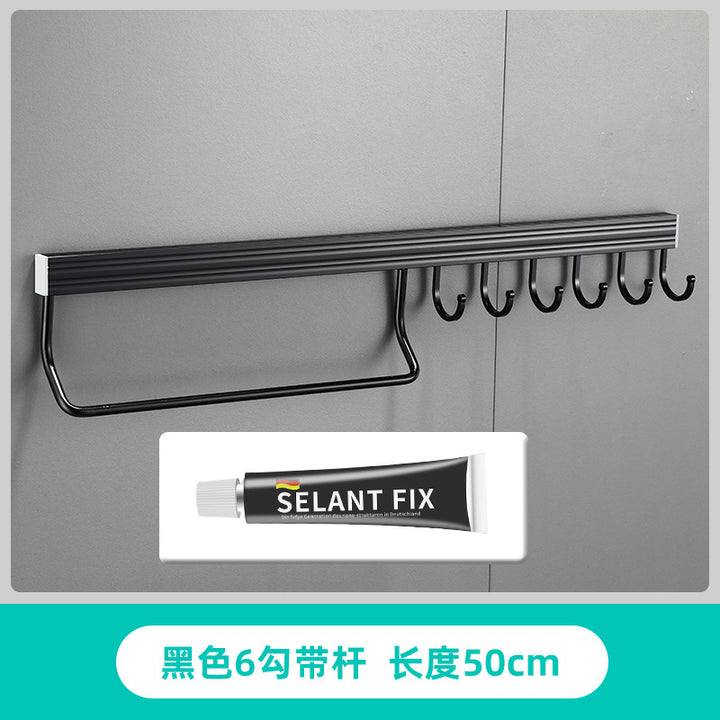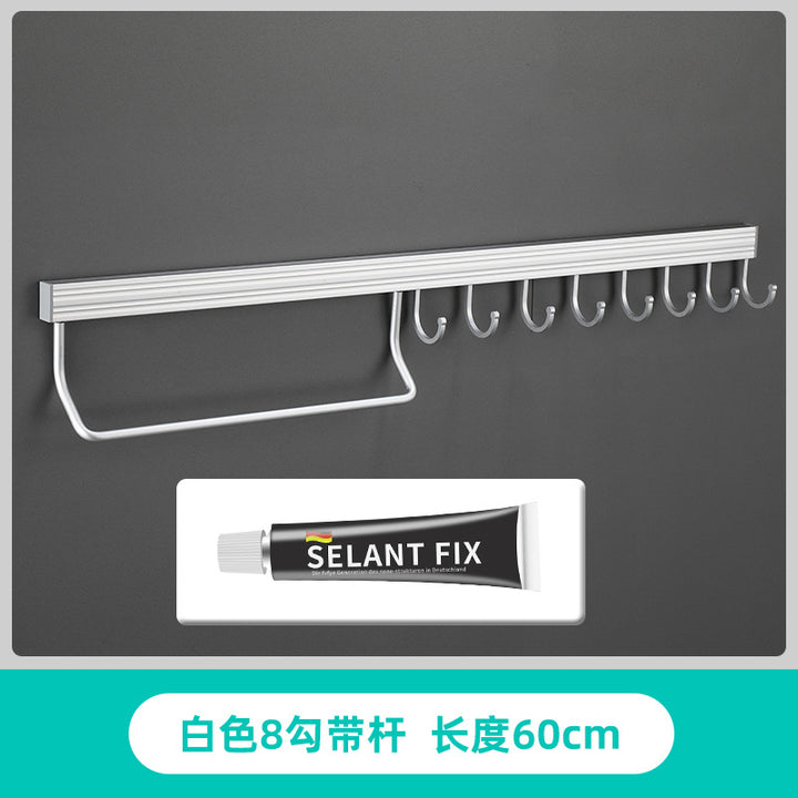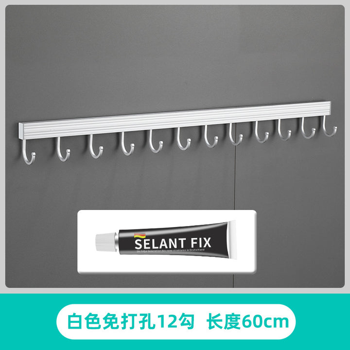 No punching kitchen hook wall rack, space aluminum multi-functional kitchen and bathroom pendant row hook spatula hook hanger