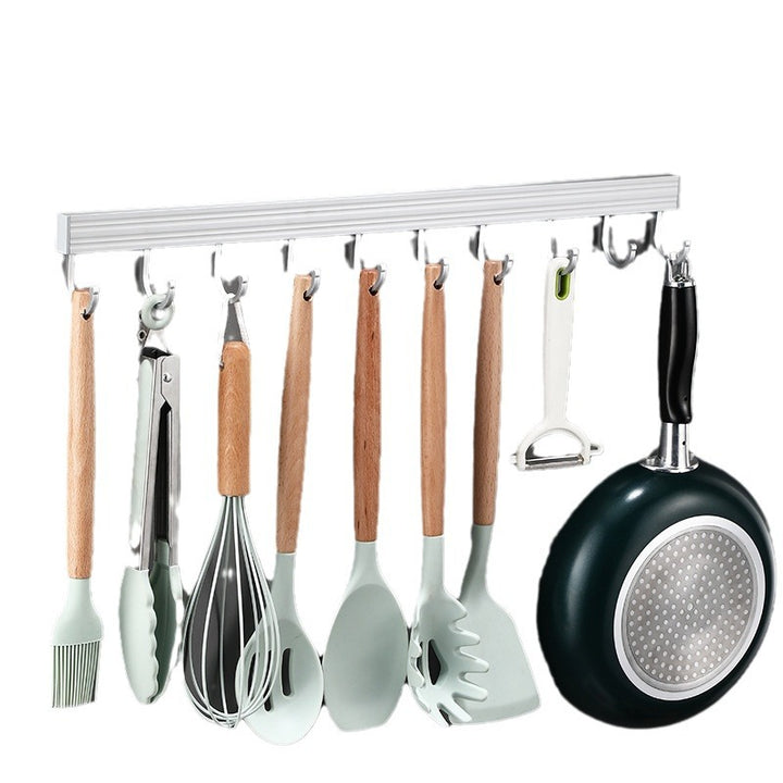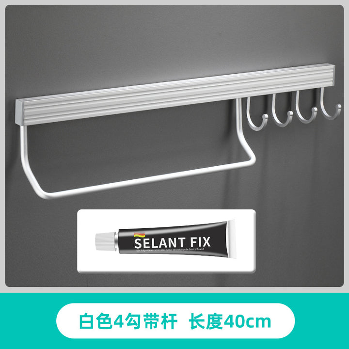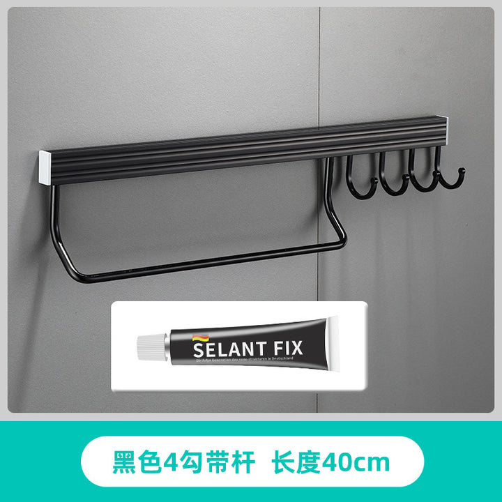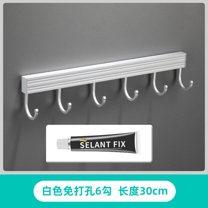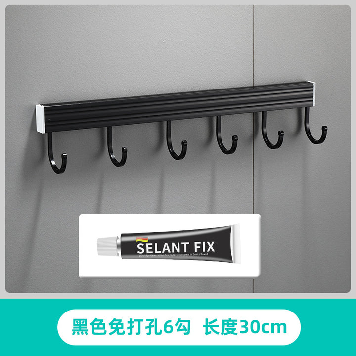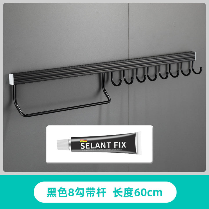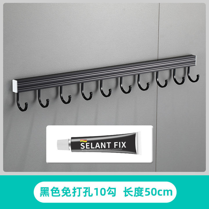No punching kitchen hook wall rack, space aluminum multi-functional kitchen and bathroom pendant row hook spatula hook hanger