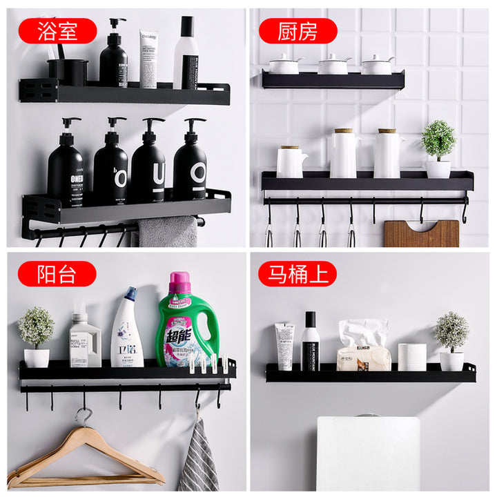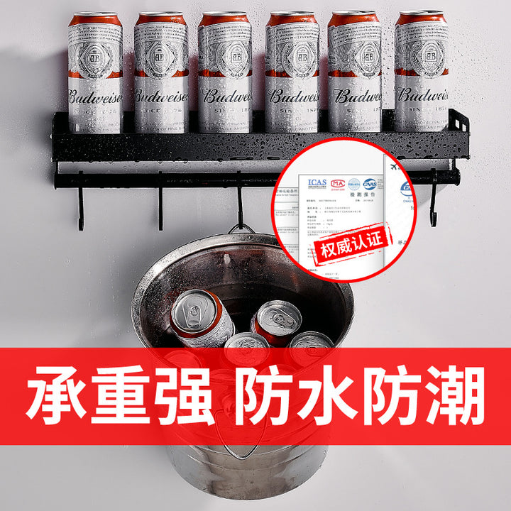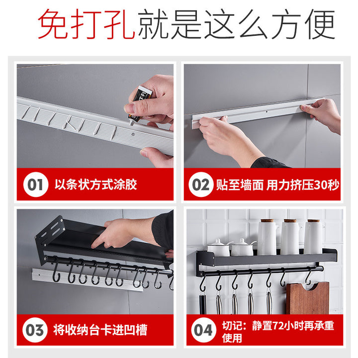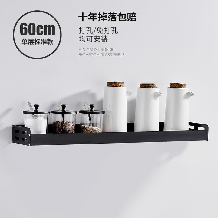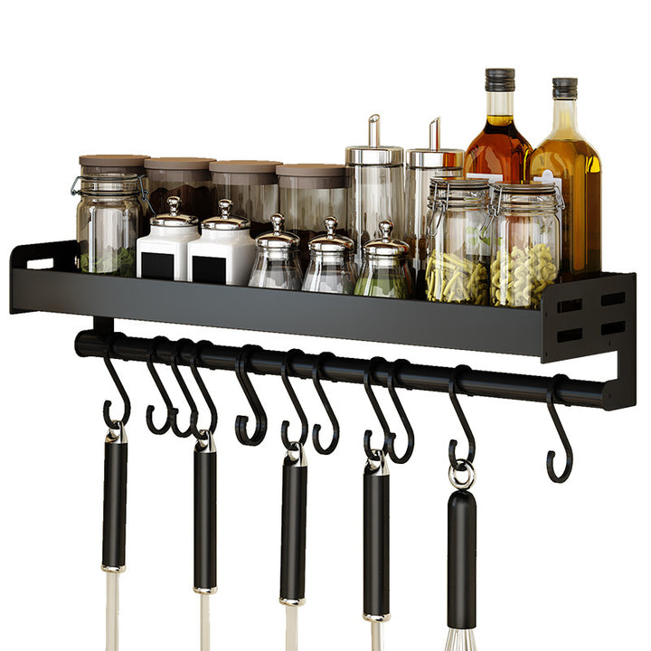 No punching kitchen rack Wall-mounted creative kitchen utensils Multifunctional black condiment storage seasoning rack
