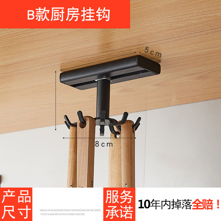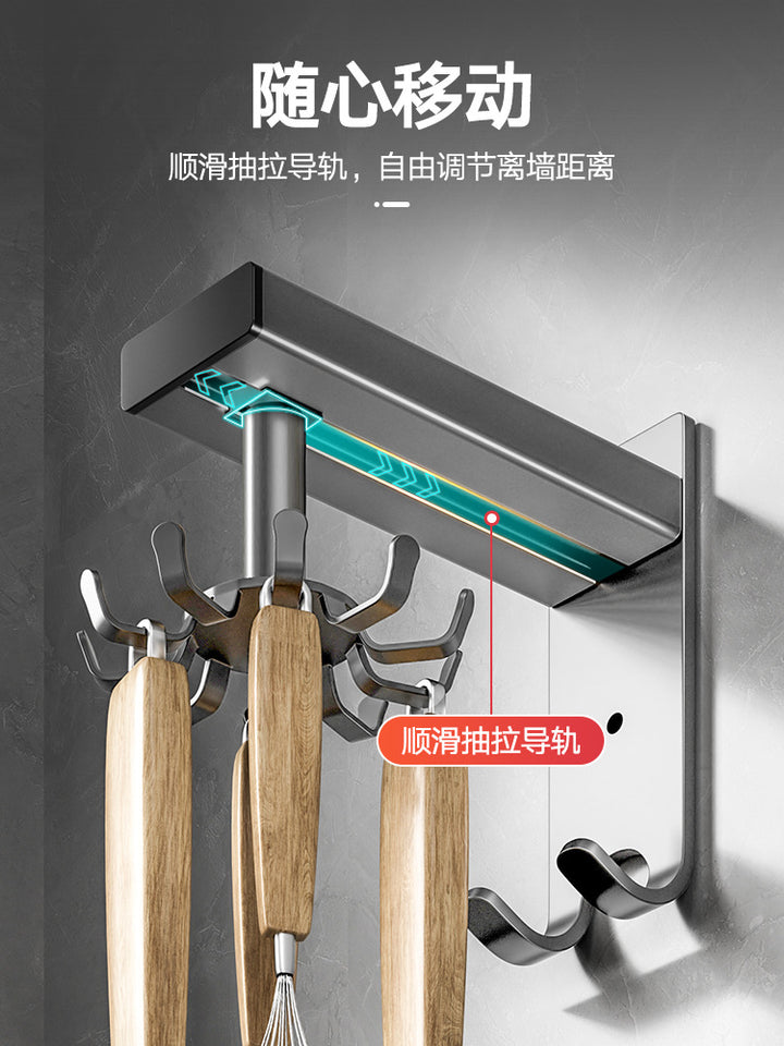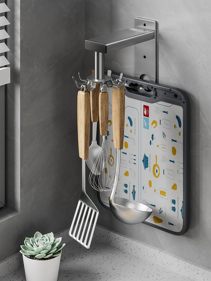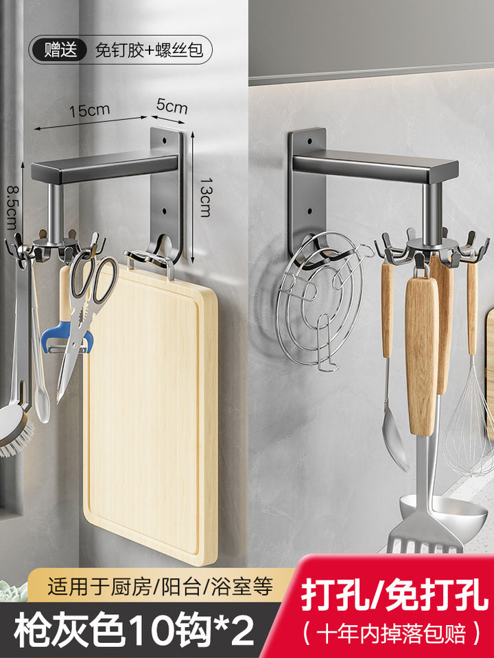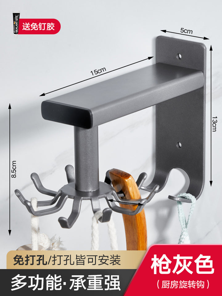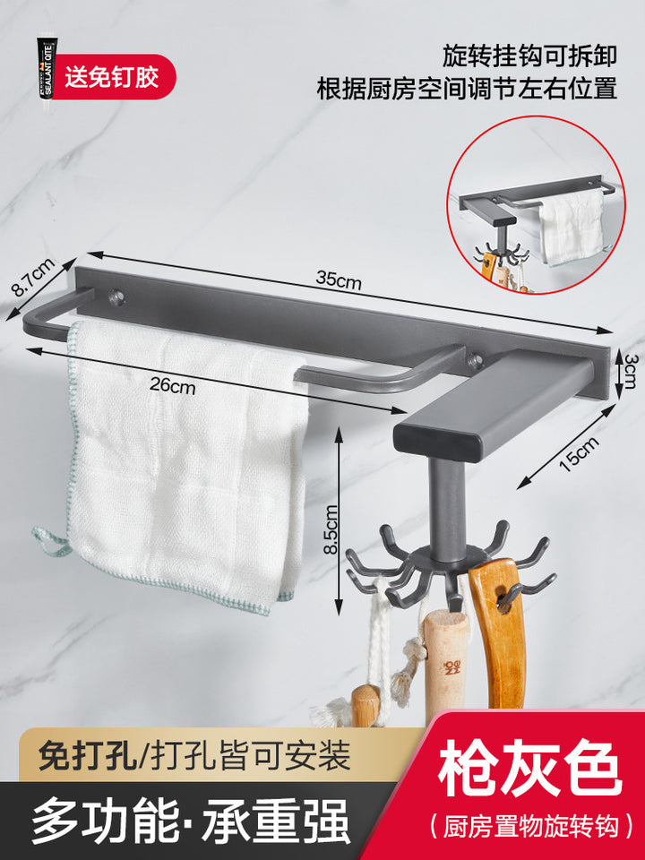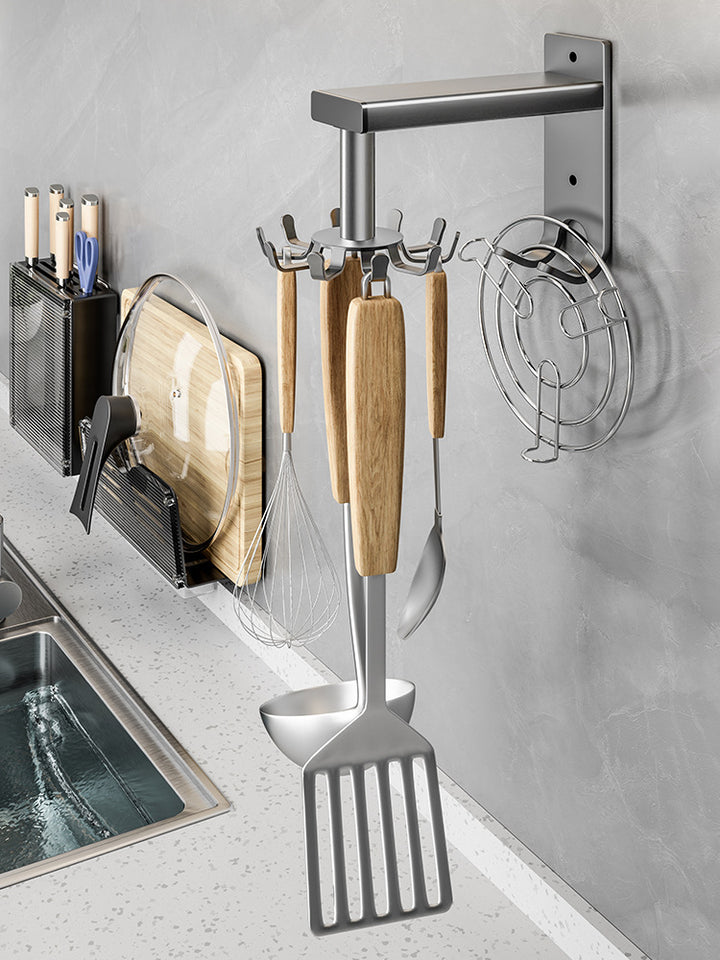 No punching kitchen rotatable gun ash hook wall mounted wall storage rack spatula spoon kitchen supplies