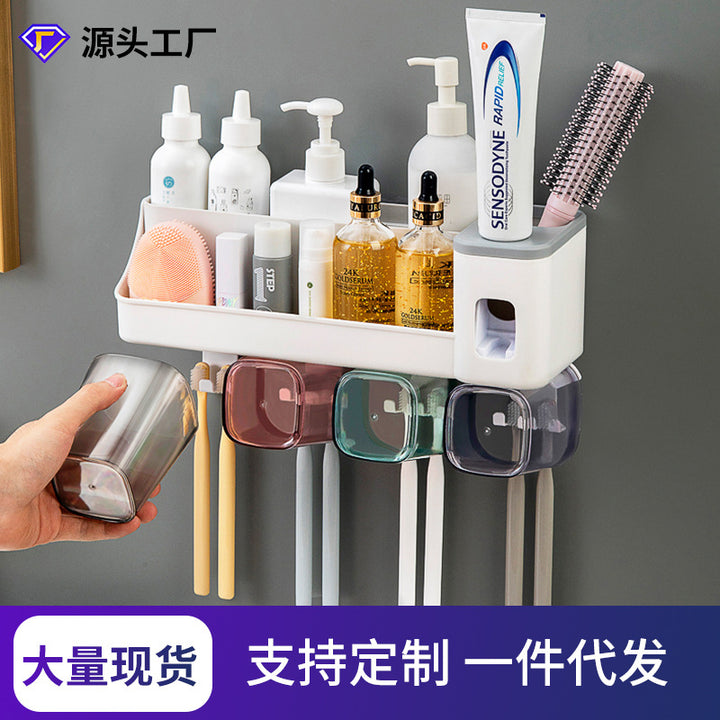 No punching toothbrush shelf tooth cup brush holder wall-mounted bathroom mouthwash cup wall-mounted toothset set