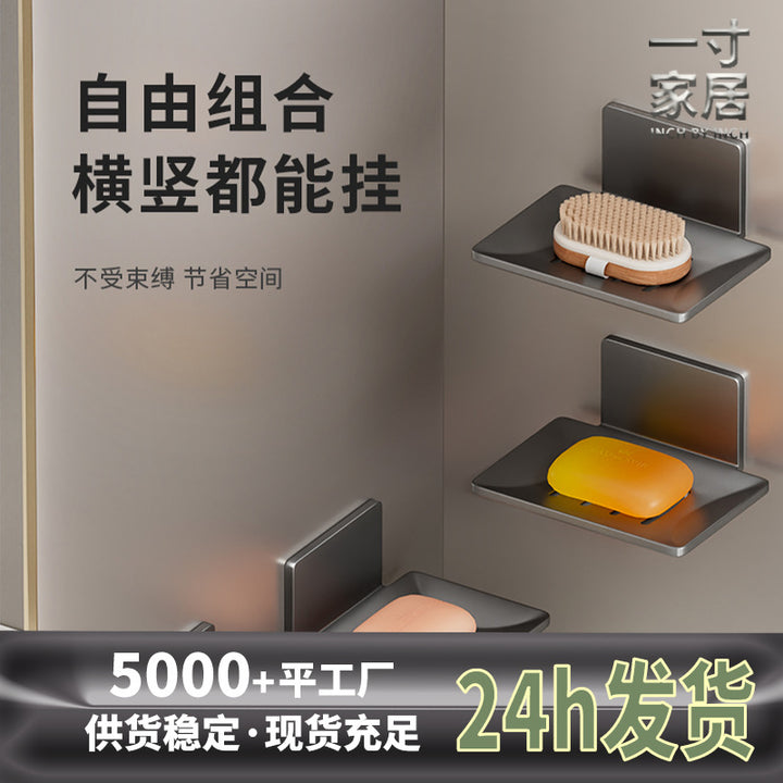 Non-punching bathroom soap box wall-mounted creative drain space aluminum bathroom soap dish ...