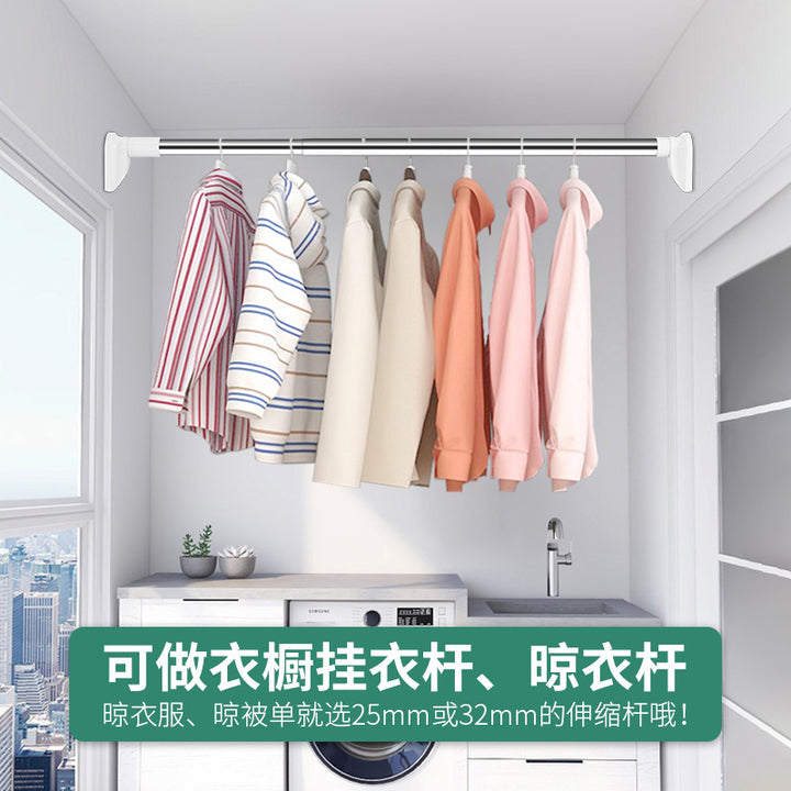 Non-punching telescopic clothes drying rod, wardrobe pole, simple installation, bathroom, bed...