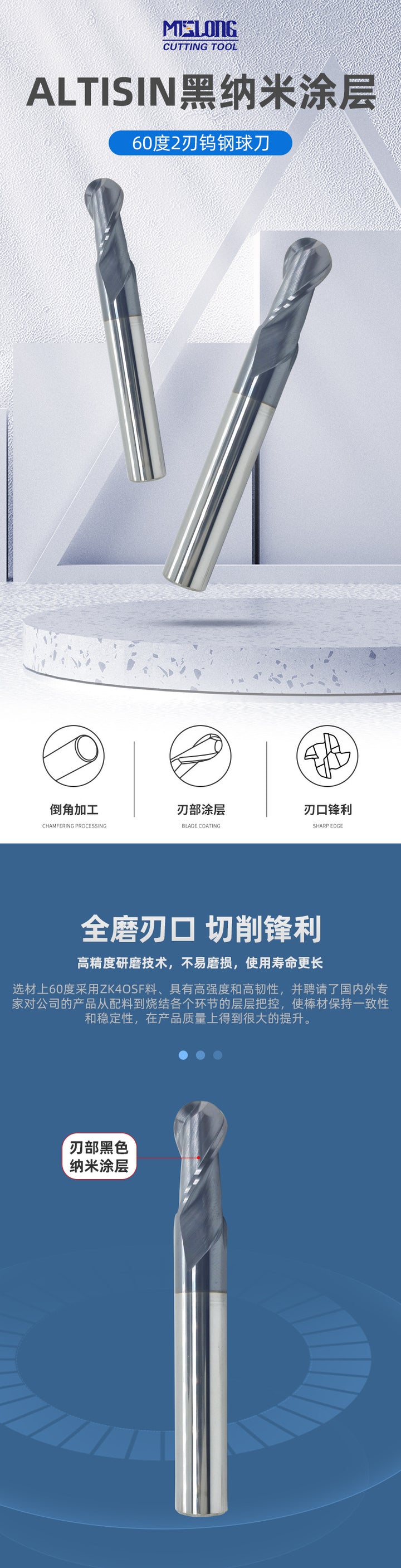 Non-standard ball end milling cutter 60 degree ball end 2-edge helical cutter alloy milling tool spiral overall chip removal