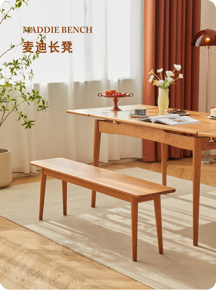 Nordic all solid wood bench cherry wood shoe changing stool household bench small apartment bedside stool Japanese rectangular stool