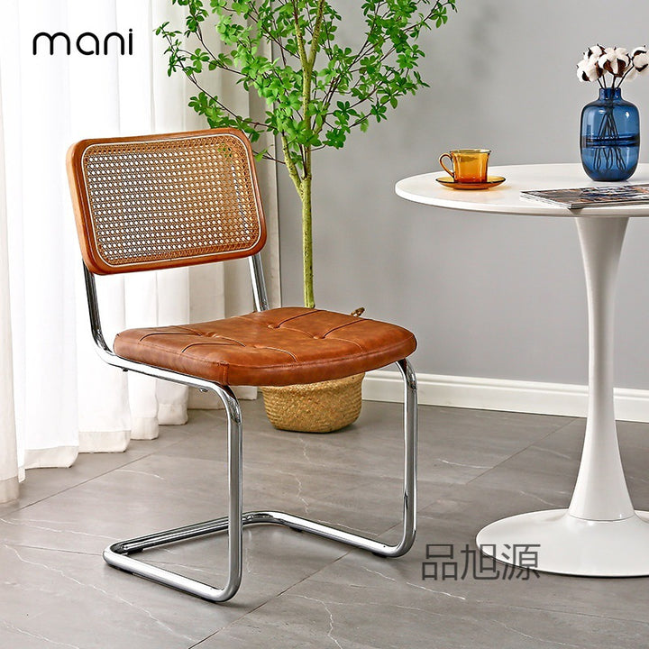 Nordic B & B Cafe Creative Rattan Bow Dining Chair Medieval Restaurant Vintage Leather Chair Casual Wrought Iron Table and Chair