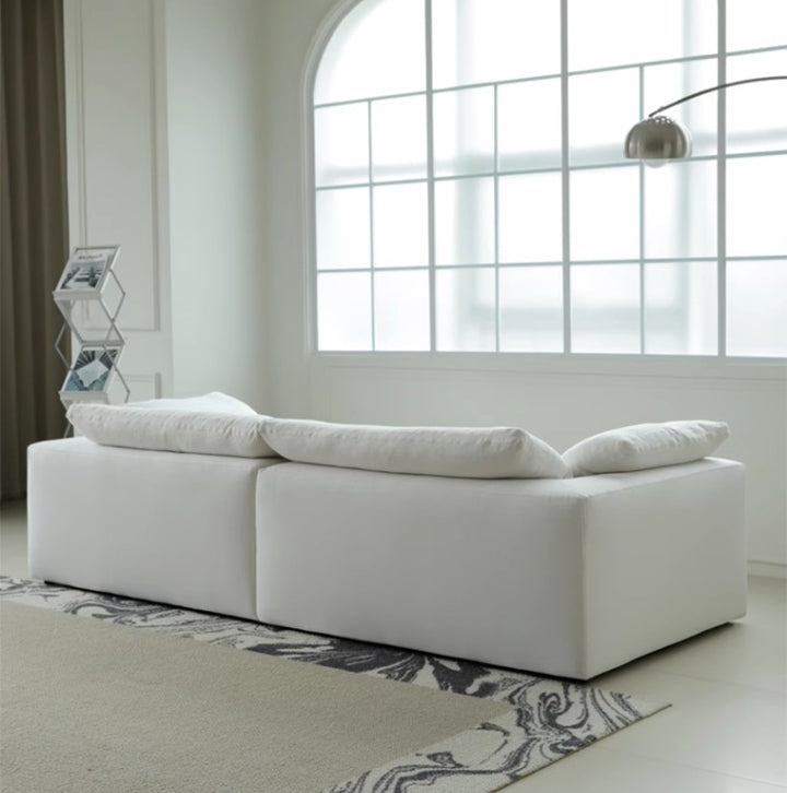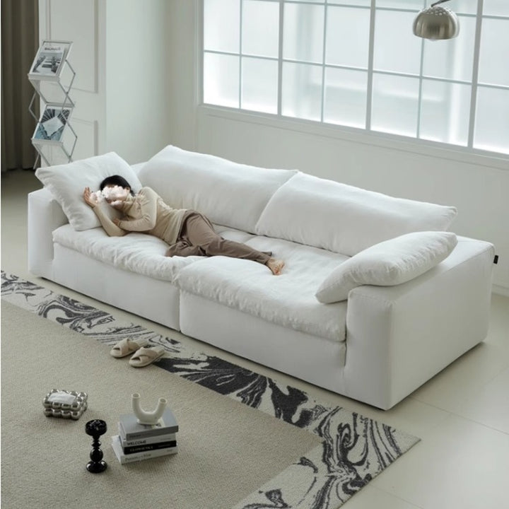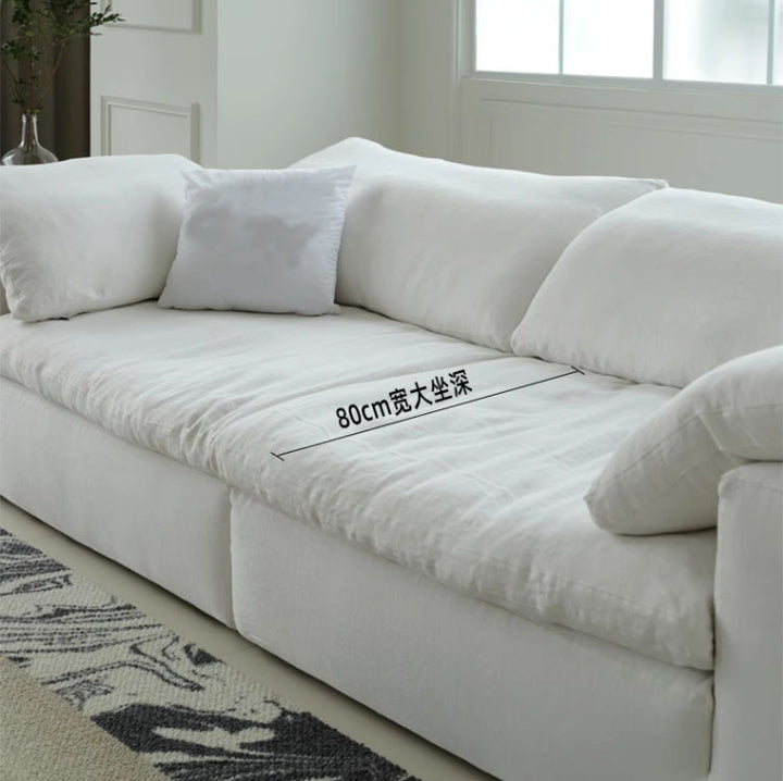 Nordic cream style living room fabric straight row wabi style modern simple removable cotton and linen three-person down sofa