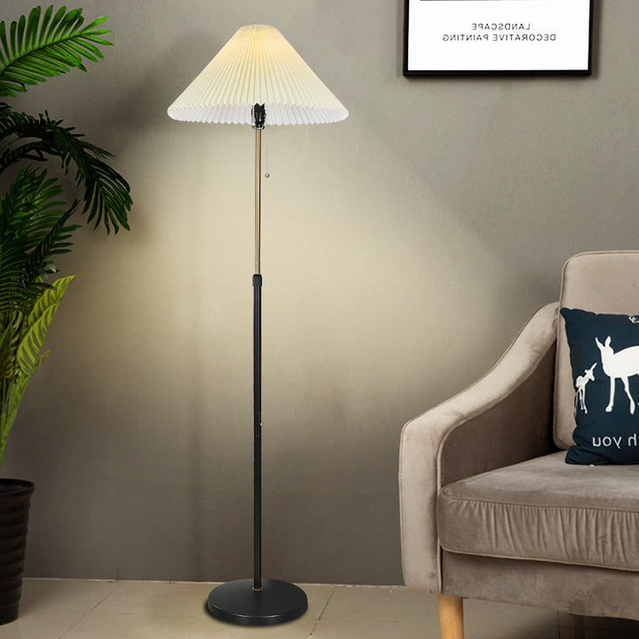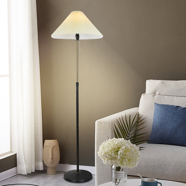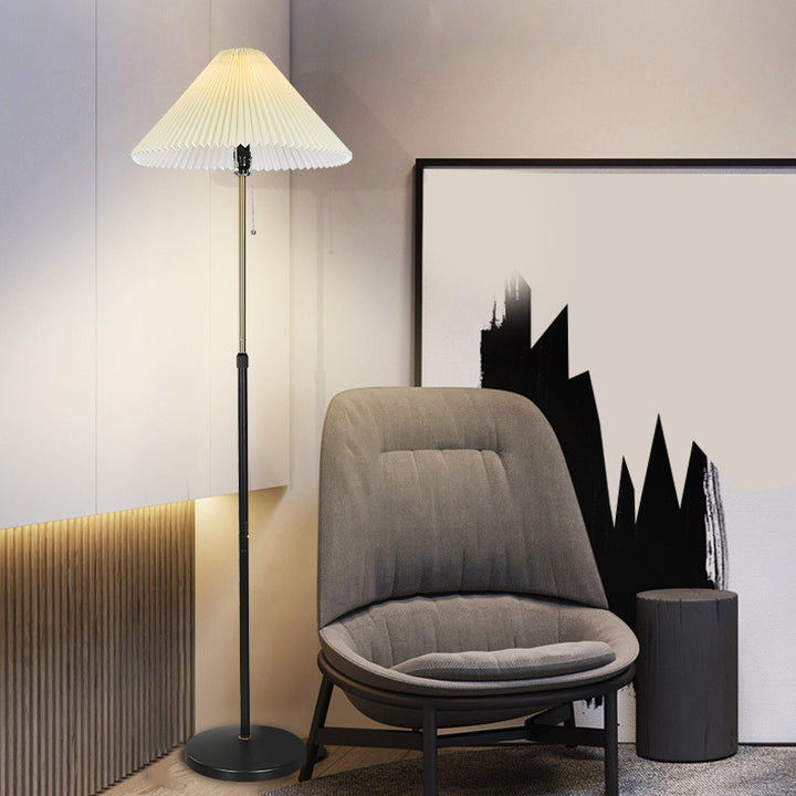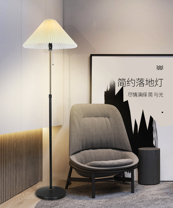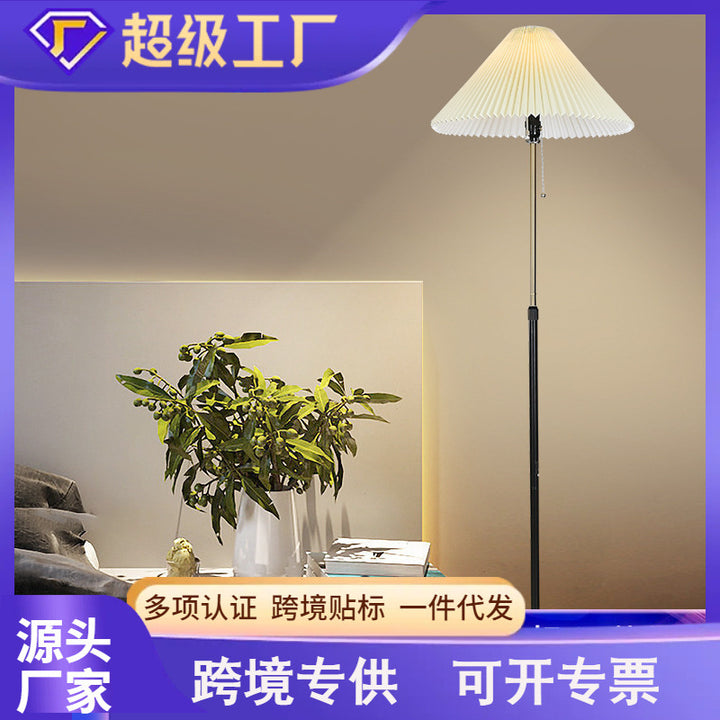 Nordic cream wind floor lamp metal long pole pleated fabric lampshade eye protection desk lamp living room bedroom study lamp