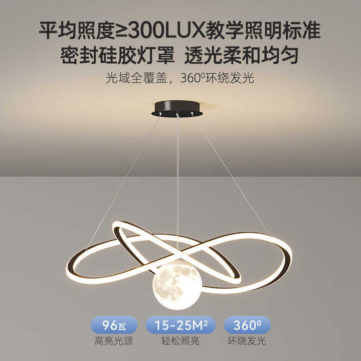 Nordic Creative Moon Living Room Chandelier Modern Simple Hall Restaurant Children's Room Bedroom Lighting Iron Design