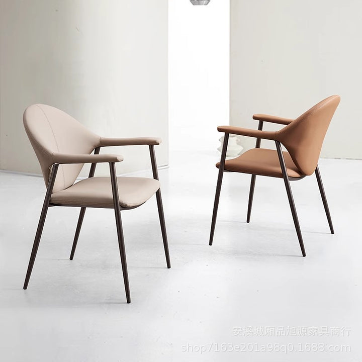 Nordic household light luxury wrought iron dining chair designer leather dining stool cafe casual back chair tea reception chair
