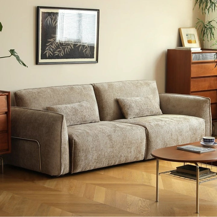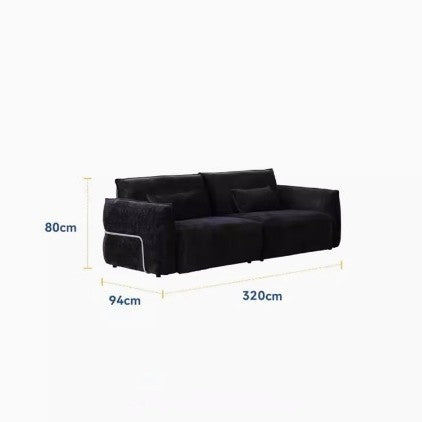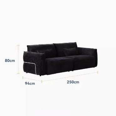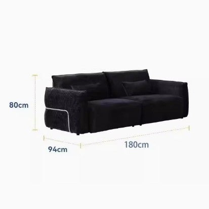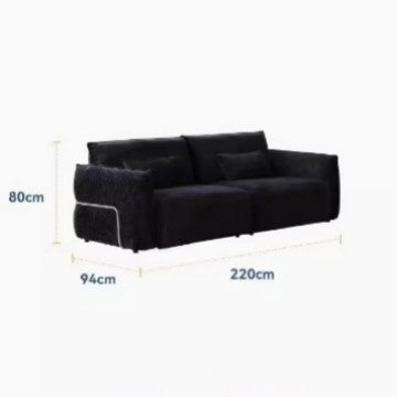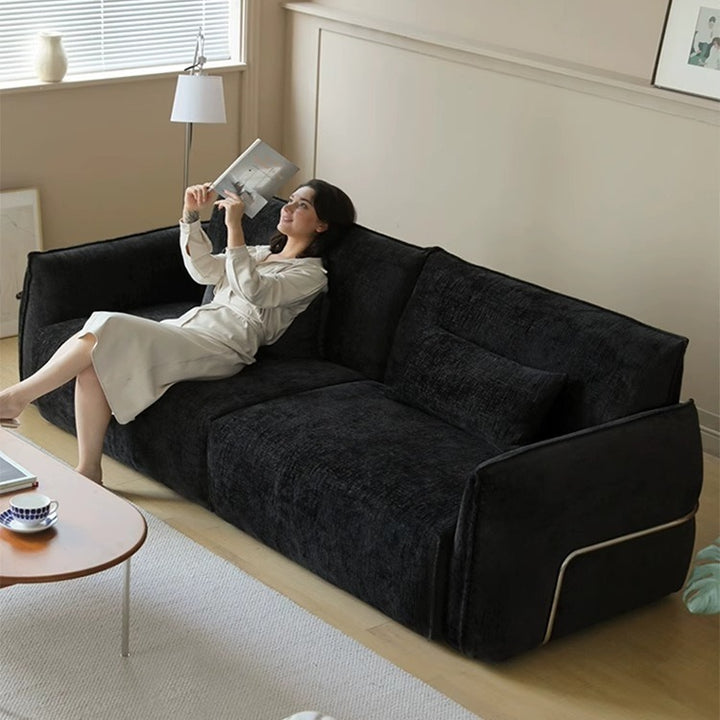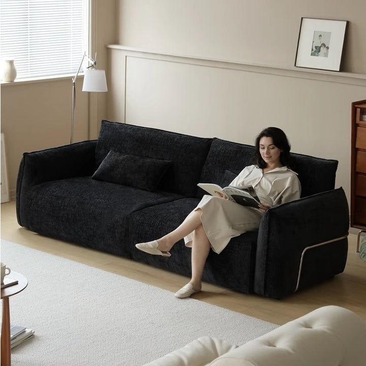 Nordic light luxury living room small apartment three-person fabric sofa straight row retro black chenille Bauhaus new