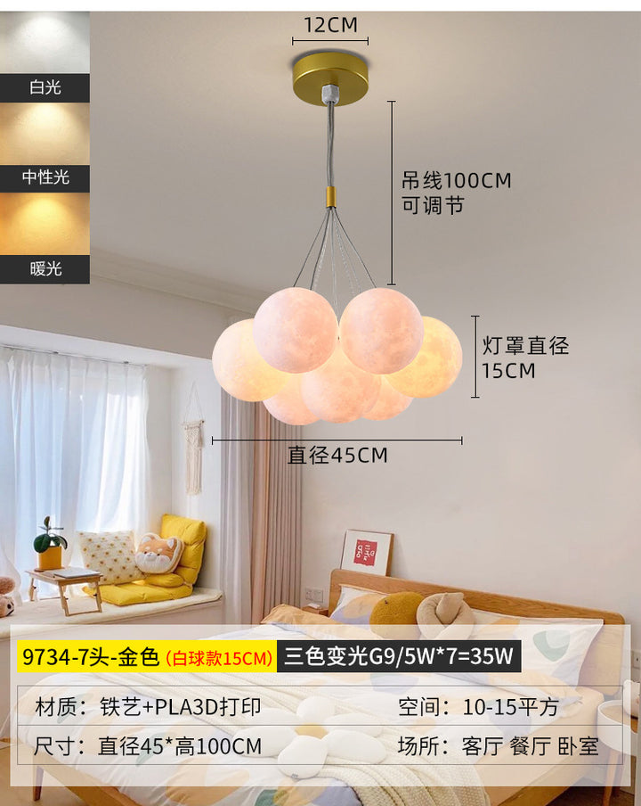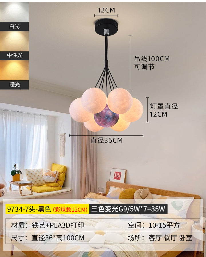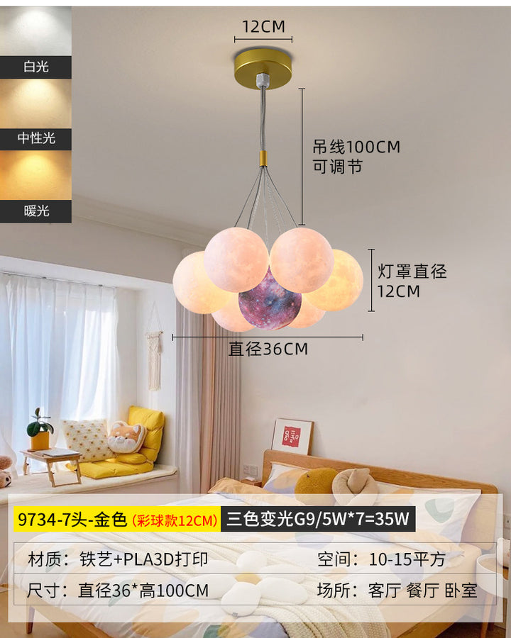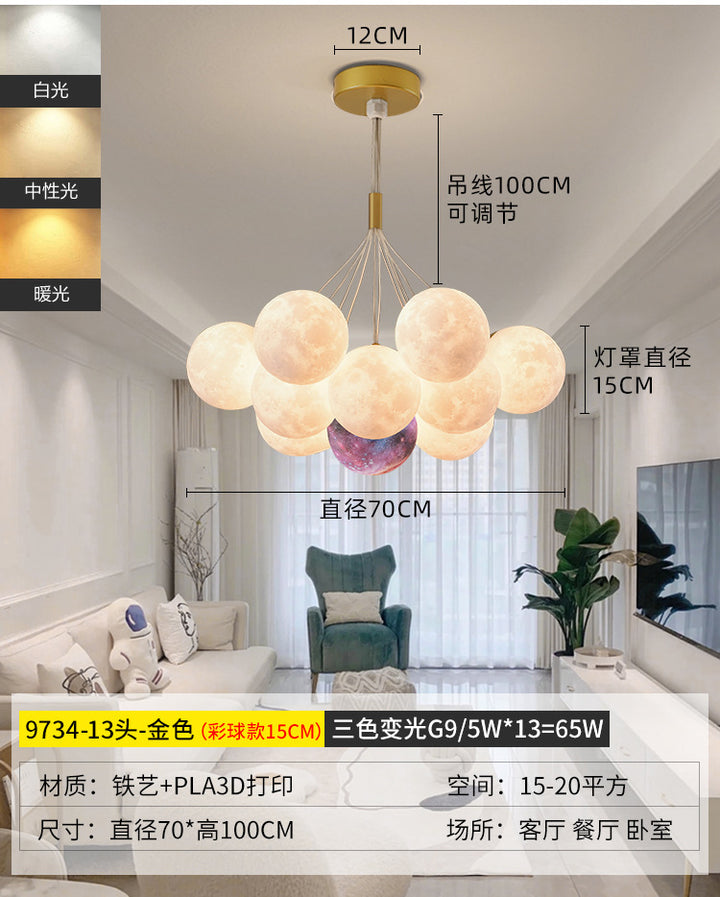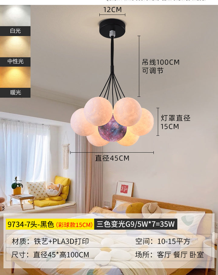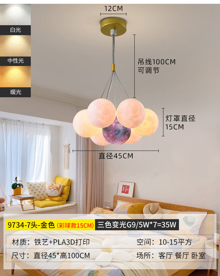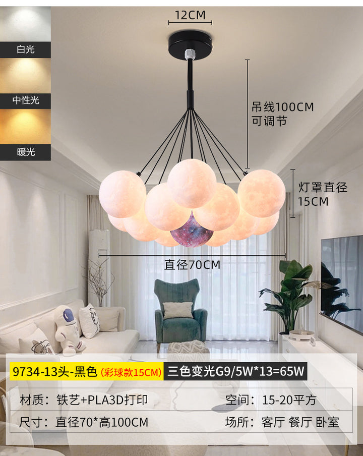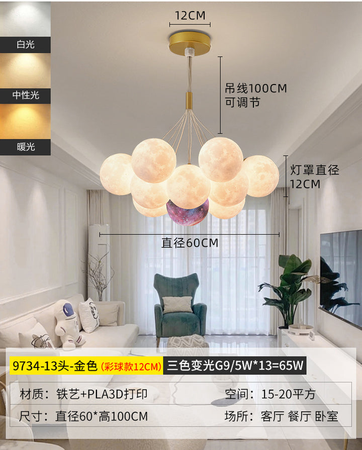 Nordic living room light luxury chandelier designer creative 3D planet moon light children's room bedroom light bubble ball lamp