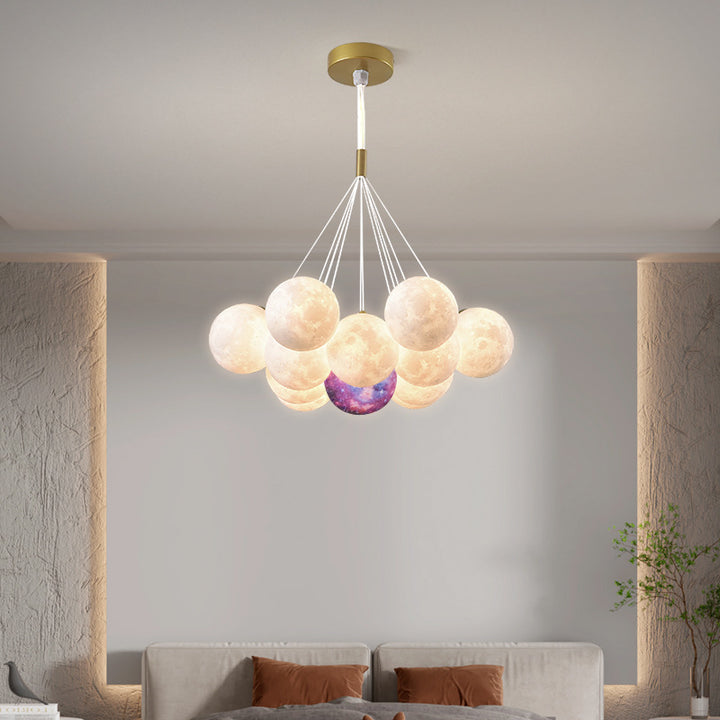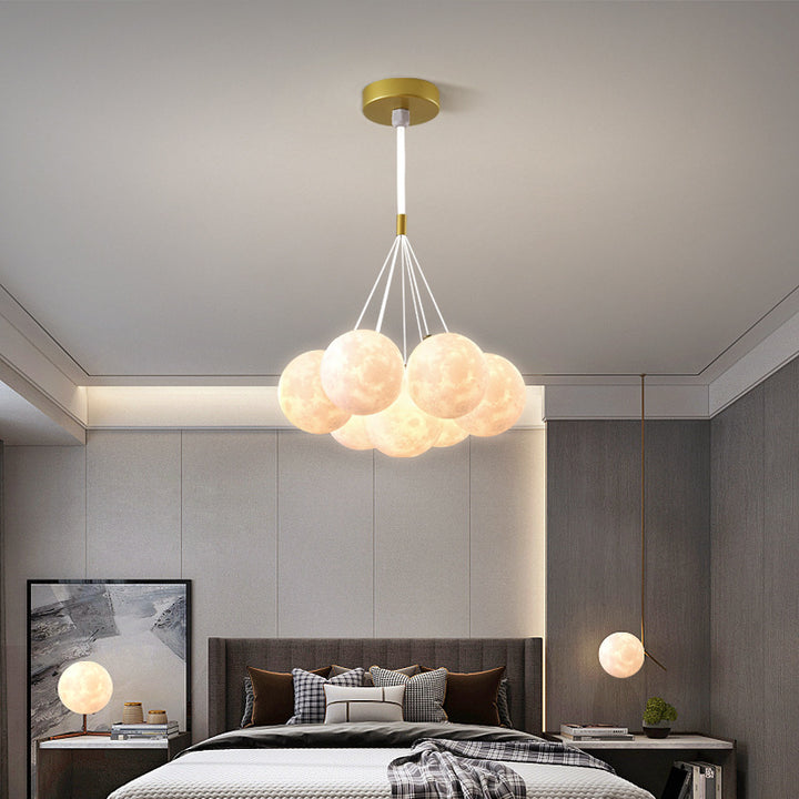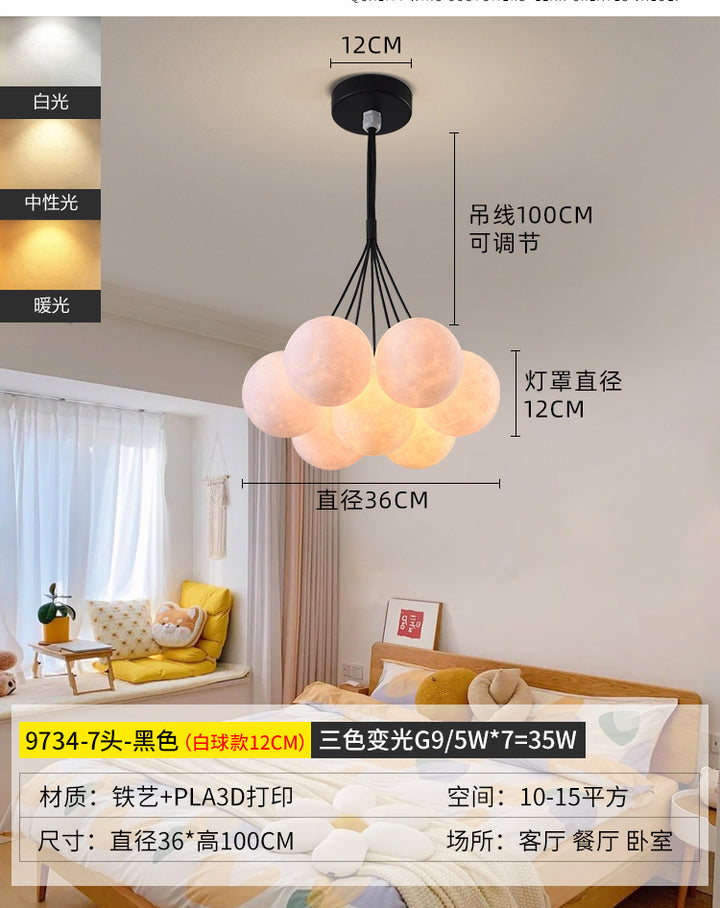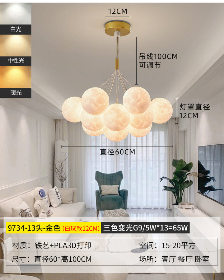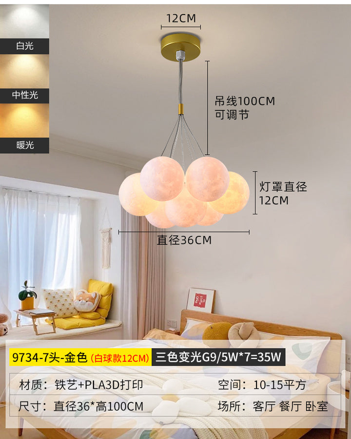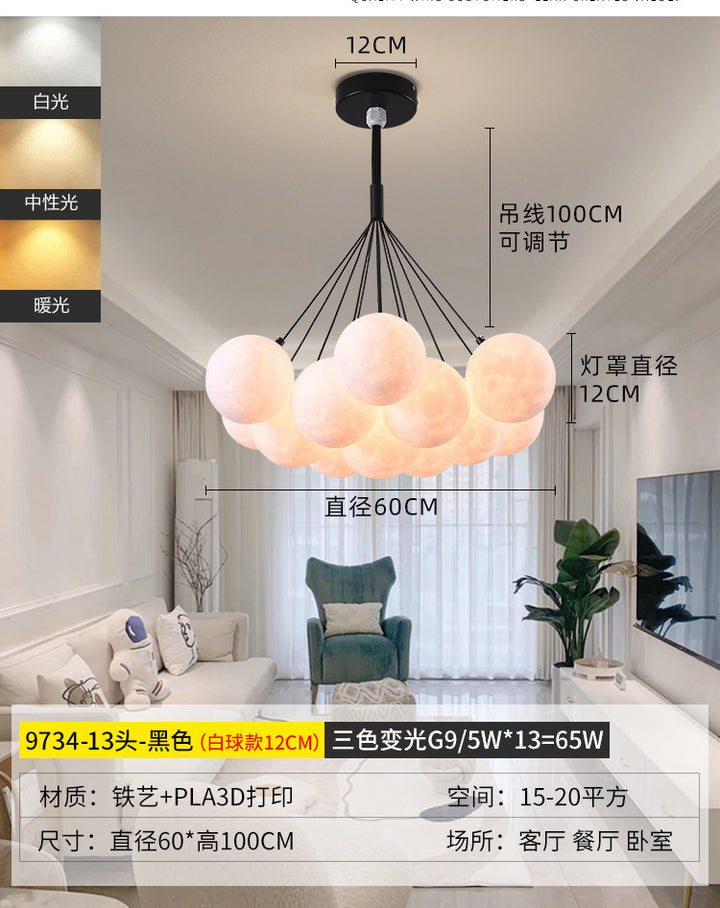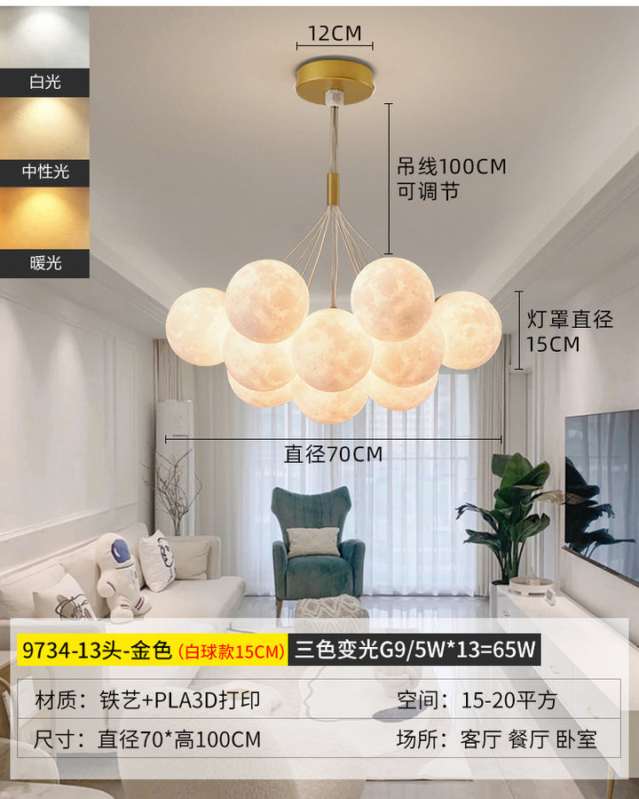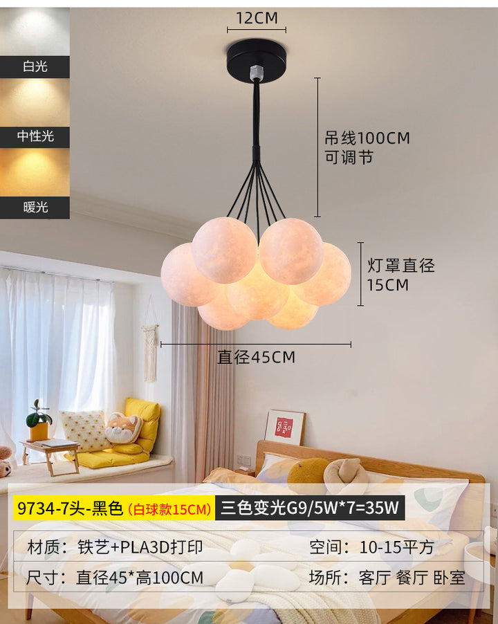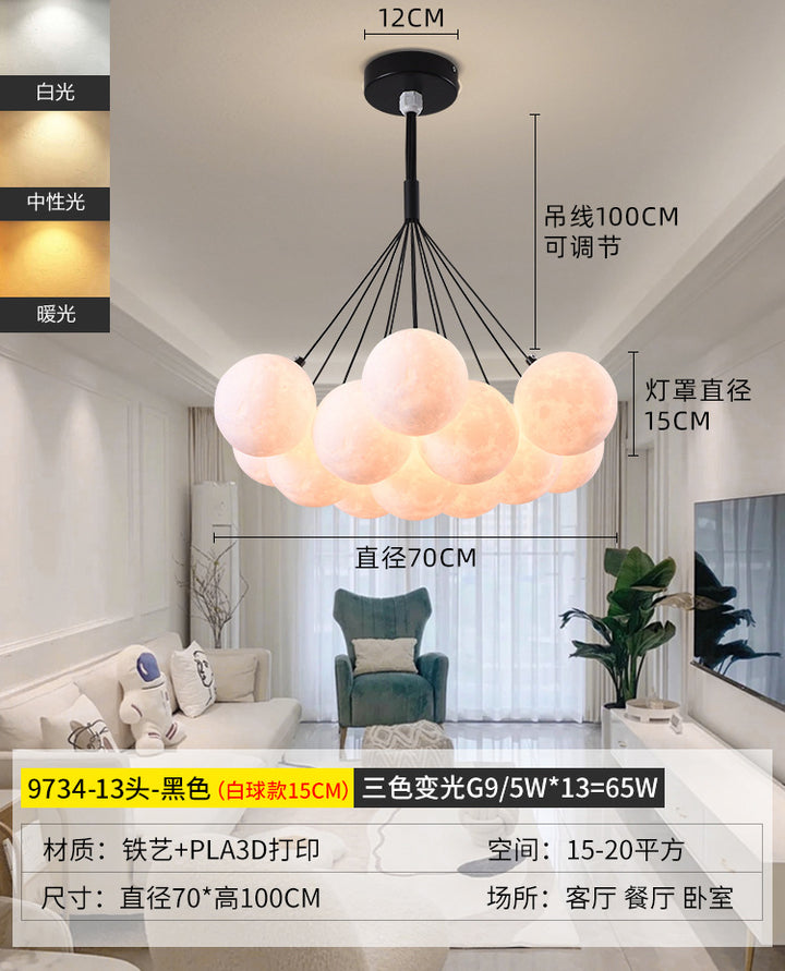Nordic living room light luxury chandelier designer creative 3D planet moon light children's room bedroom light bubble ball lamp