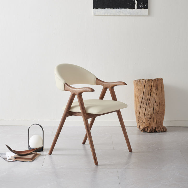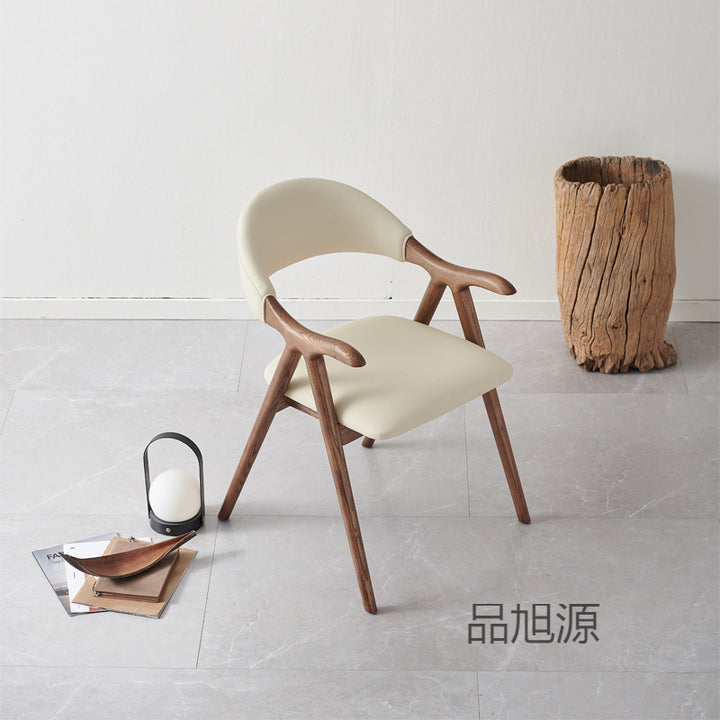 Nordic log light luxury solid wood armchair villa designer backrest dining chair ash wood faucet chair retro style