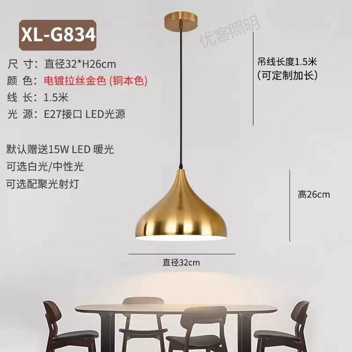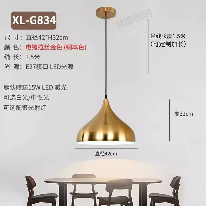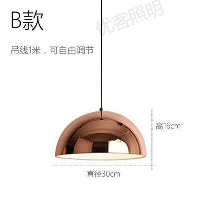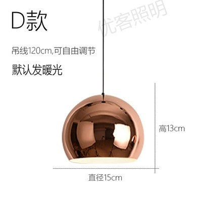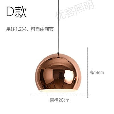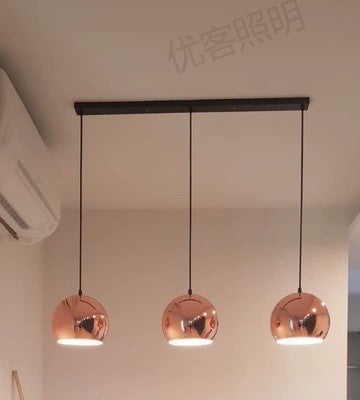 Nordic modern simple gold round spherical single-headed dining room chandelier wrought iron electroplating lamp rose gold chandelier