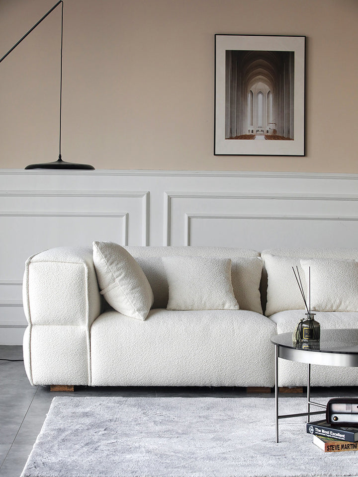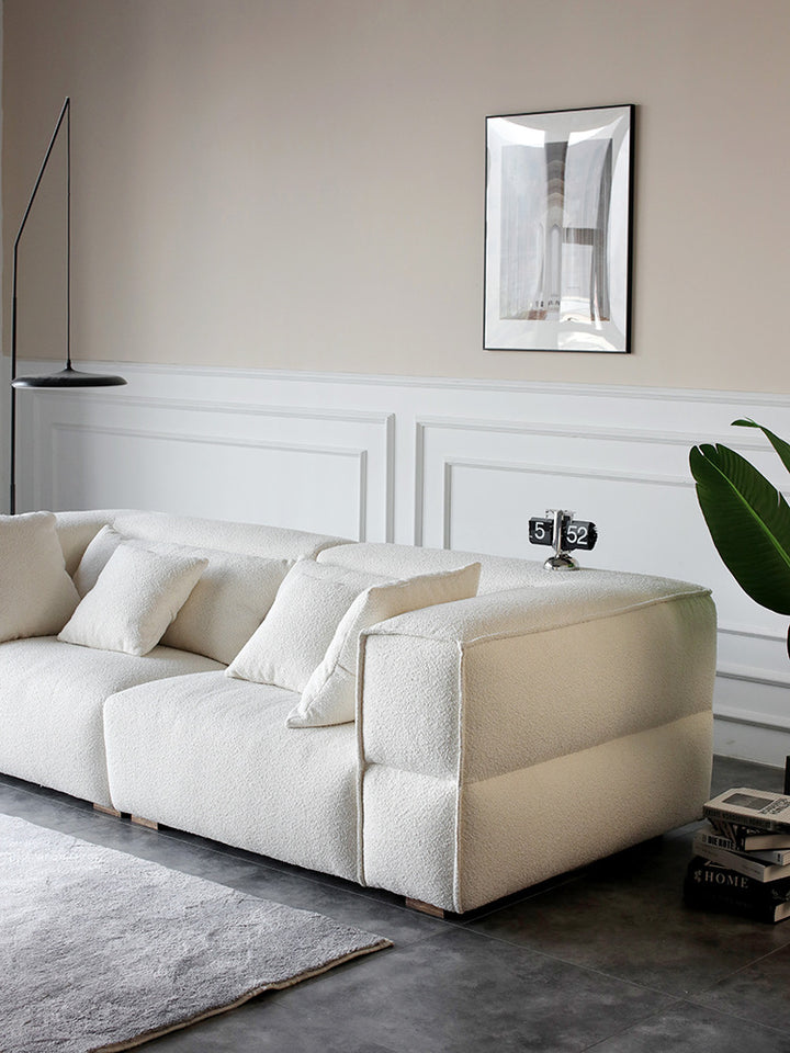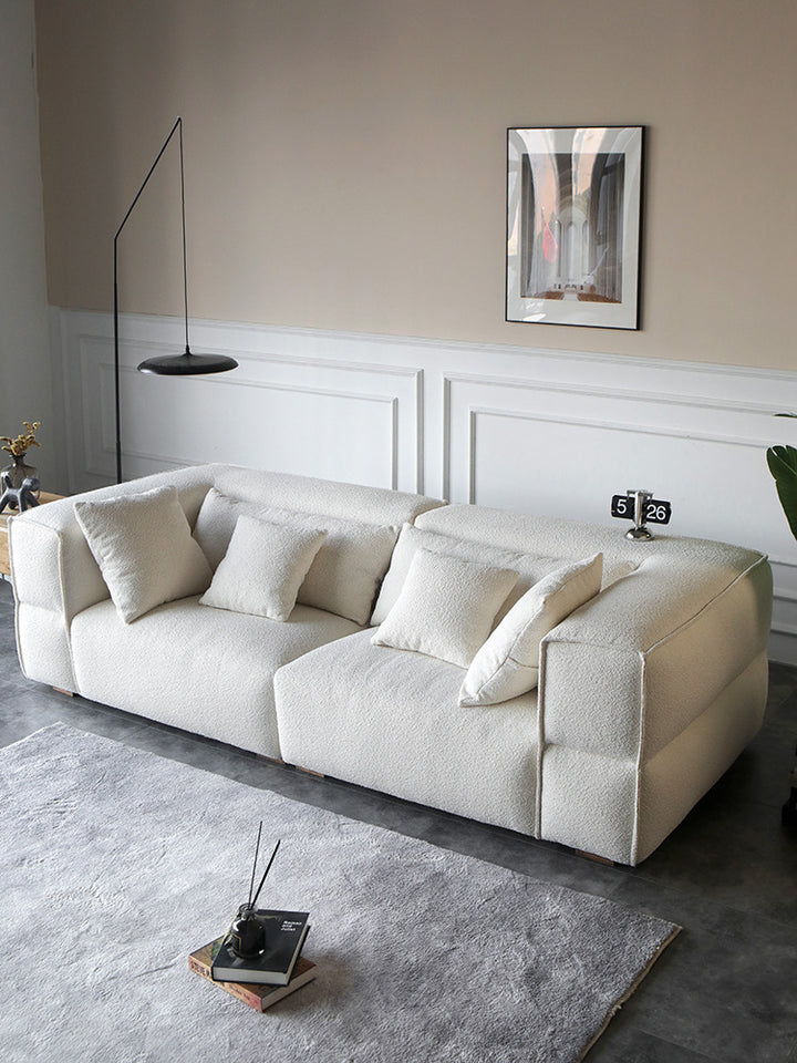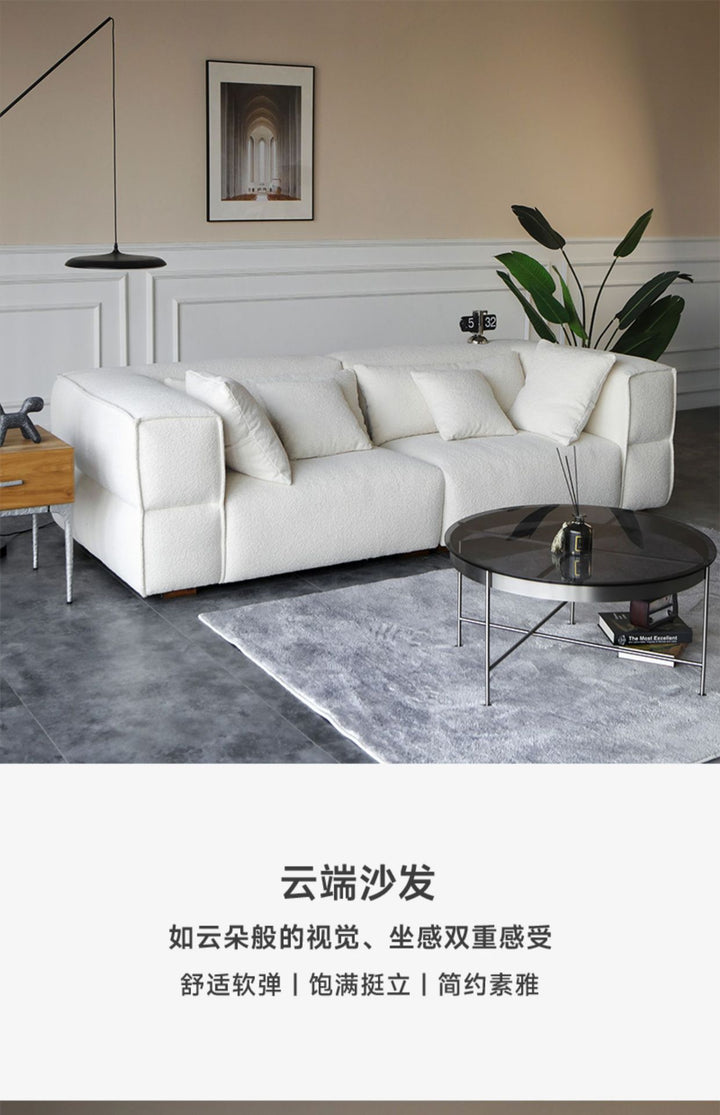 Nordic modern simple living room three-person fabric sofa Italian minimalist lamb wool light luxury retro four-person sofa