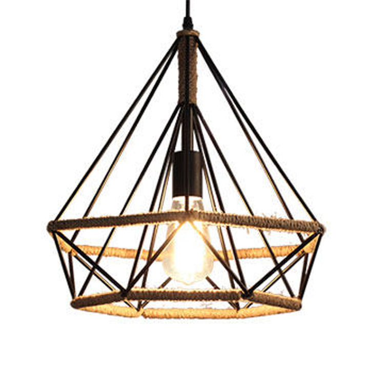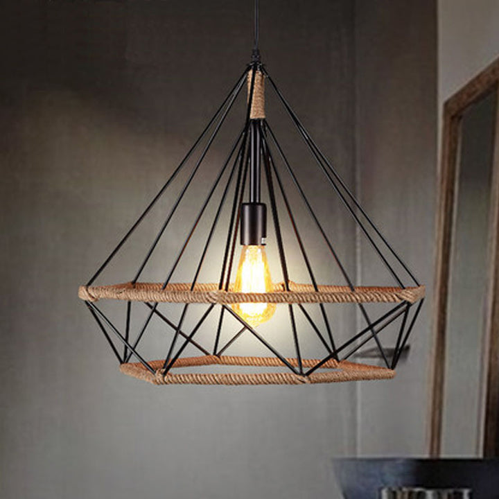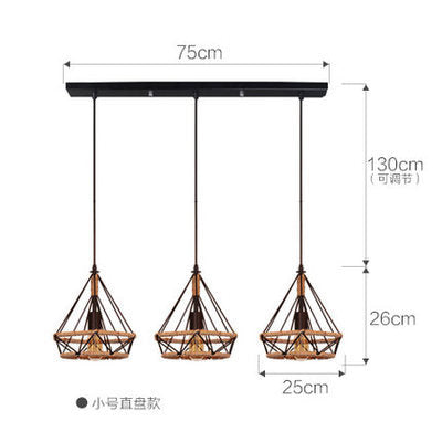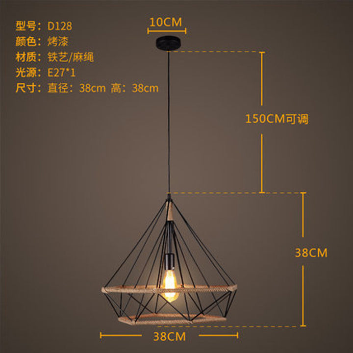 Nordic modern simple restaurant chandelier creative three-head loft lamp, retro restaurant diamond wrought iron hemp rope lamp