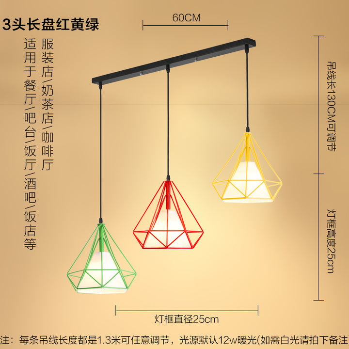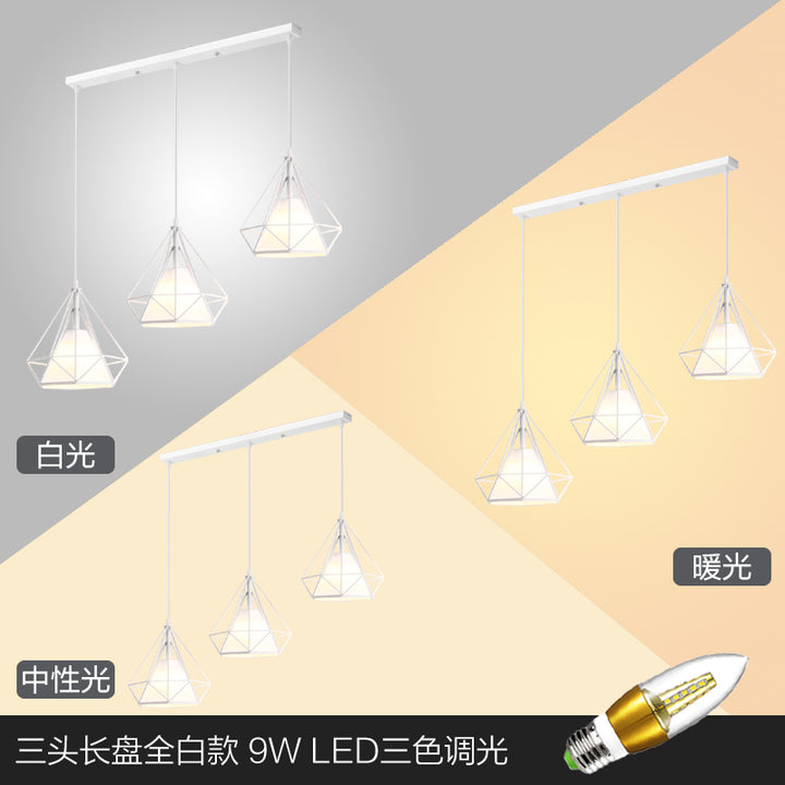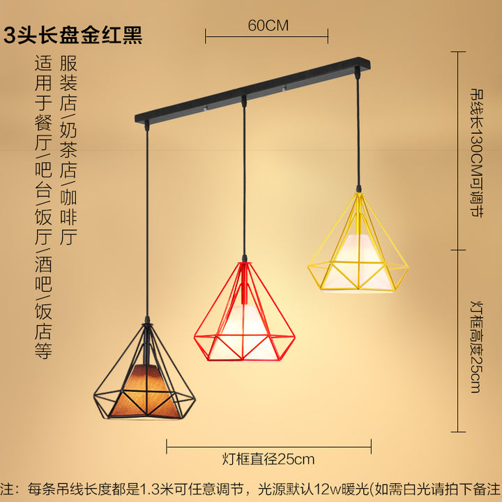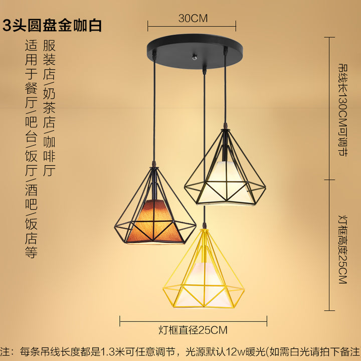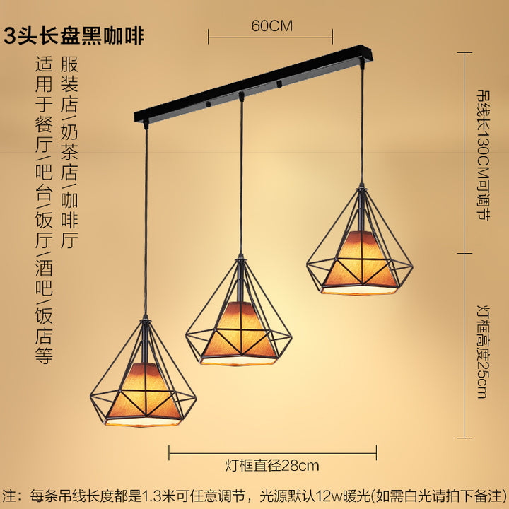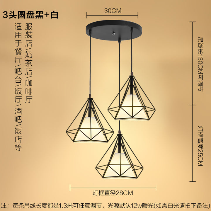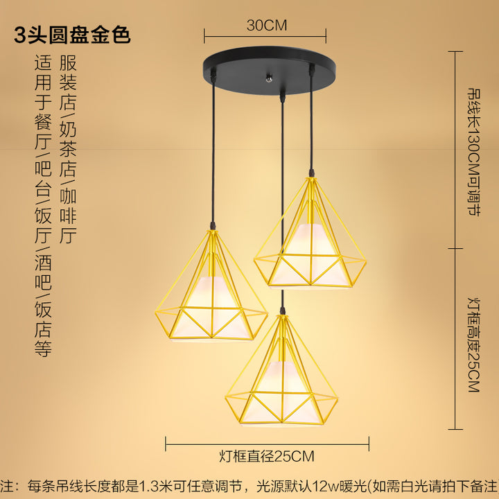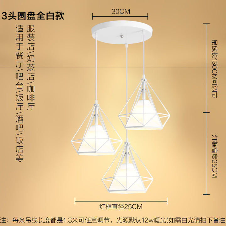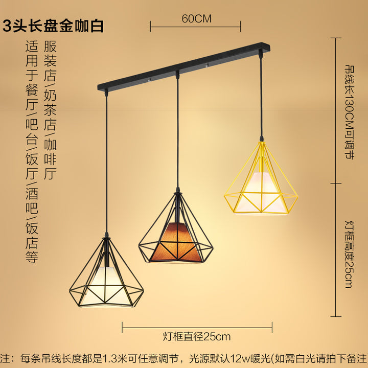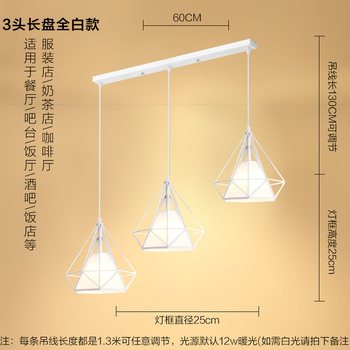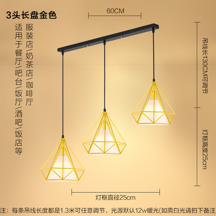 Nordic modern simple restaurant chandelier creative three-head store commercial lighting art diamond wrought iron bar lighting
