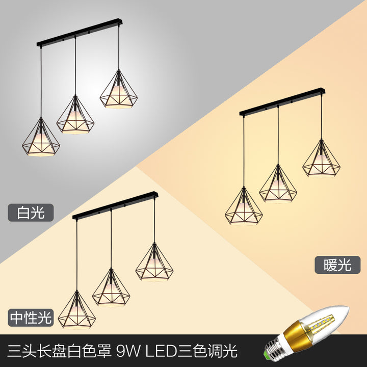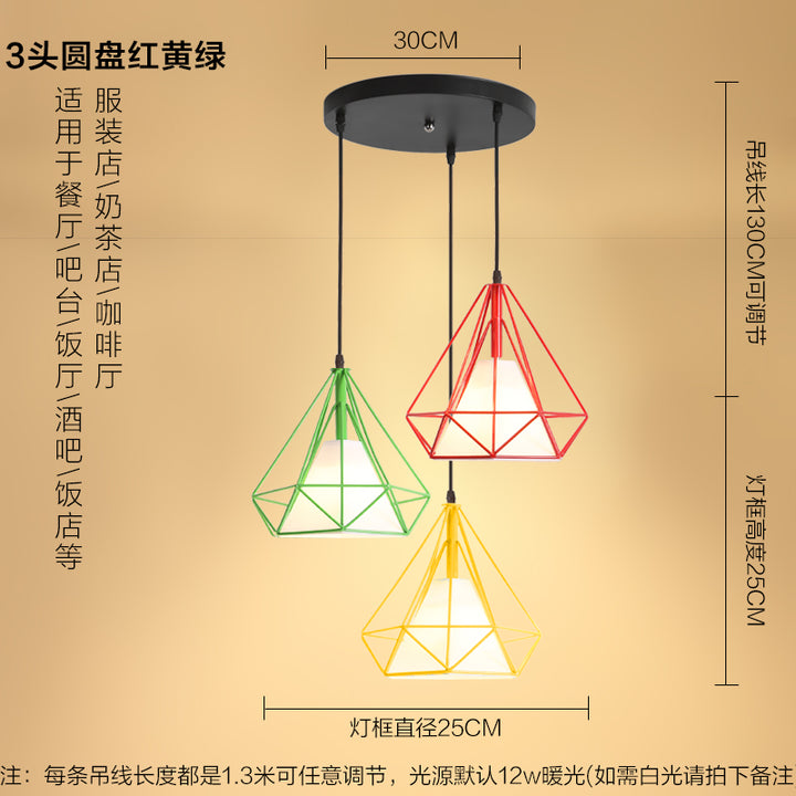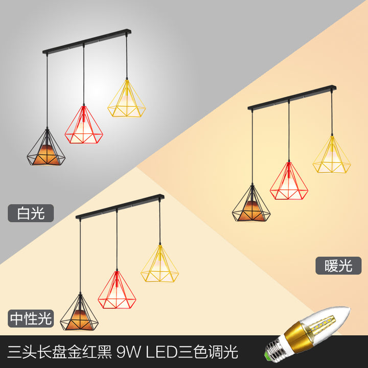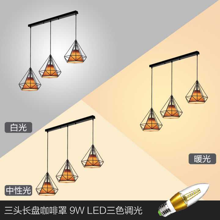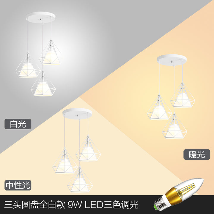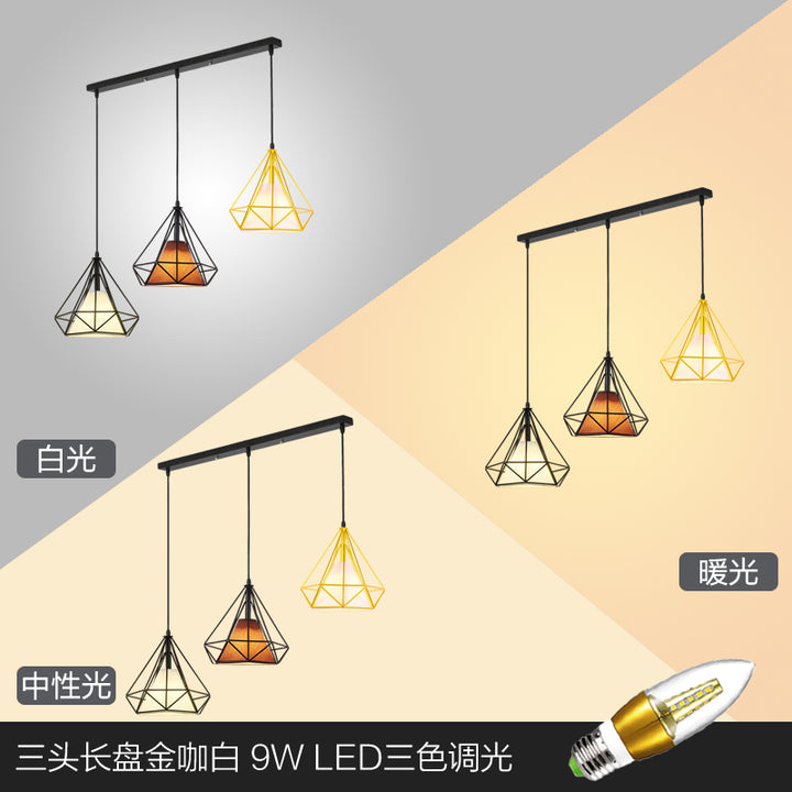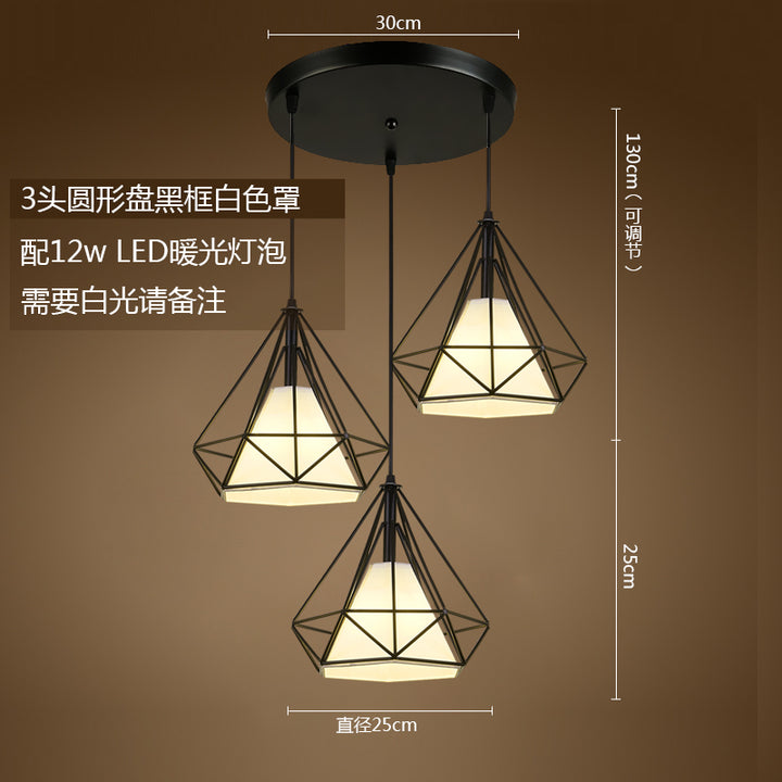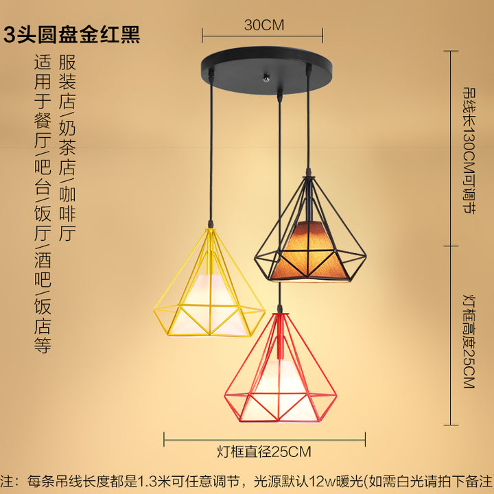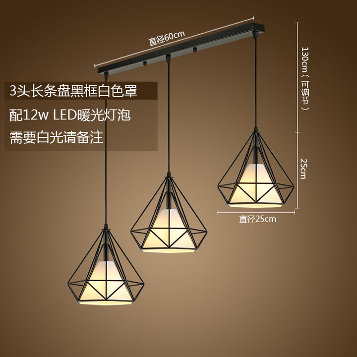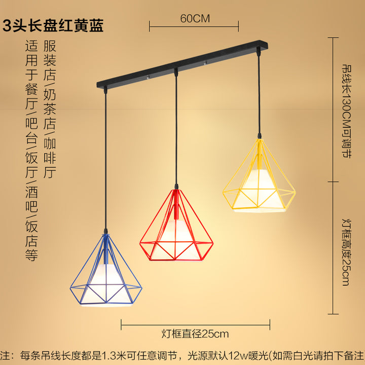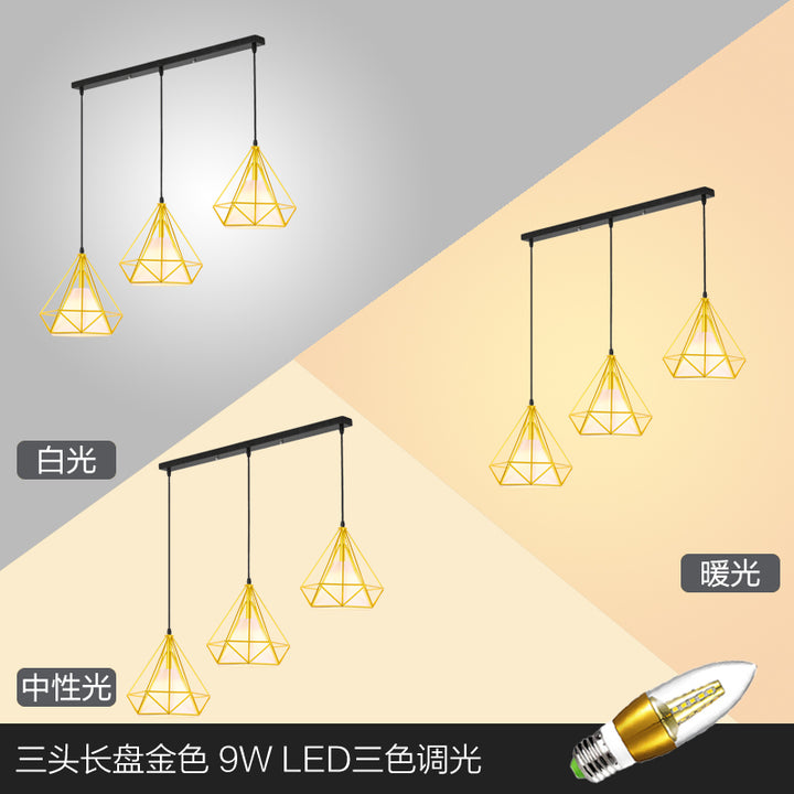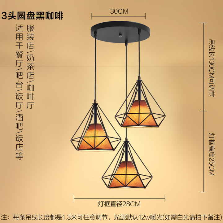 Nordic modern simple restaurant chandelier creative three-head store commercial lighting art diamond wrought iron bar lighting