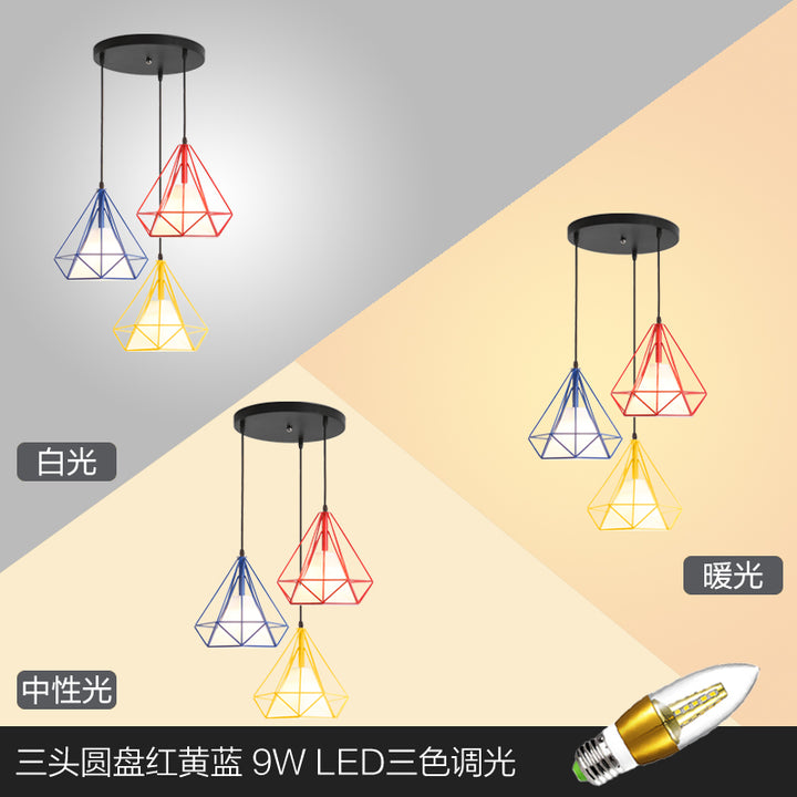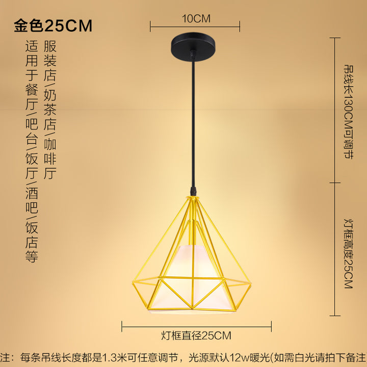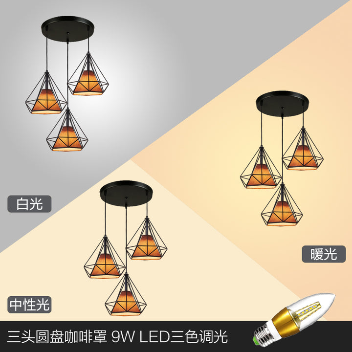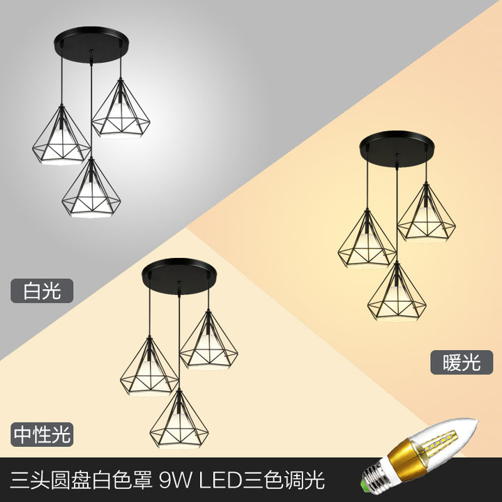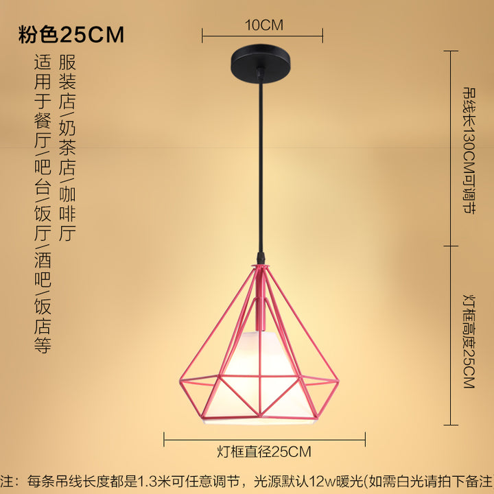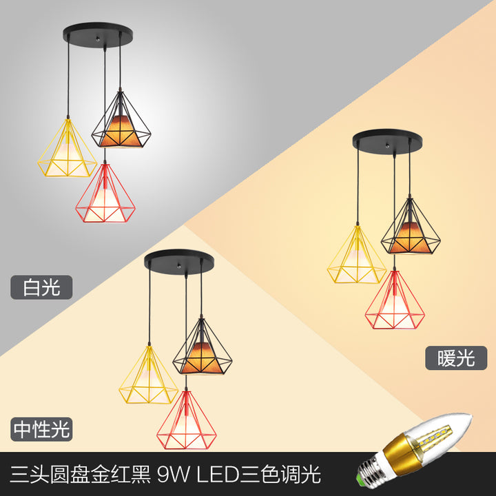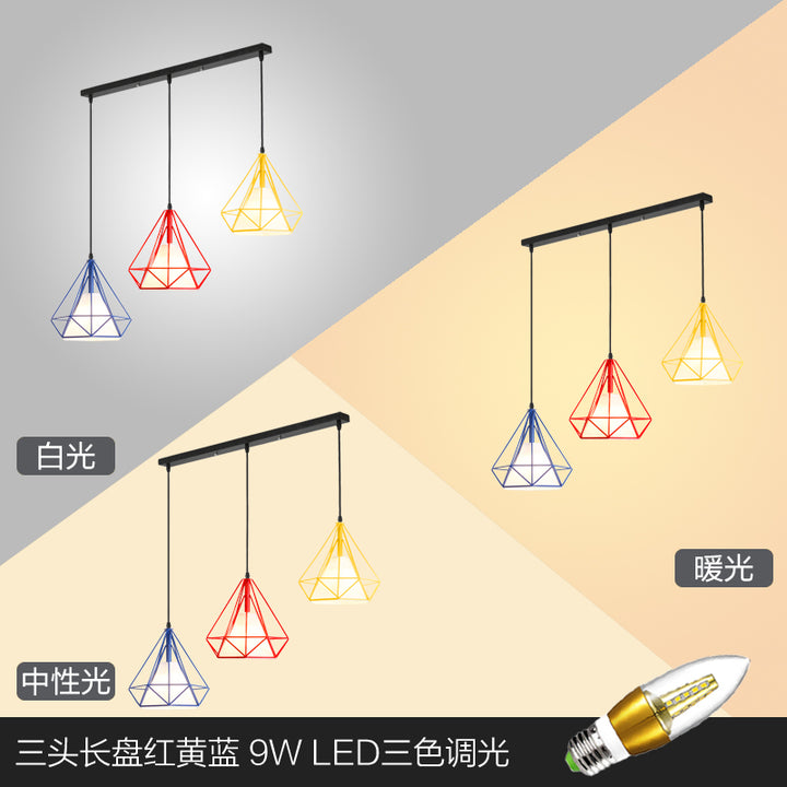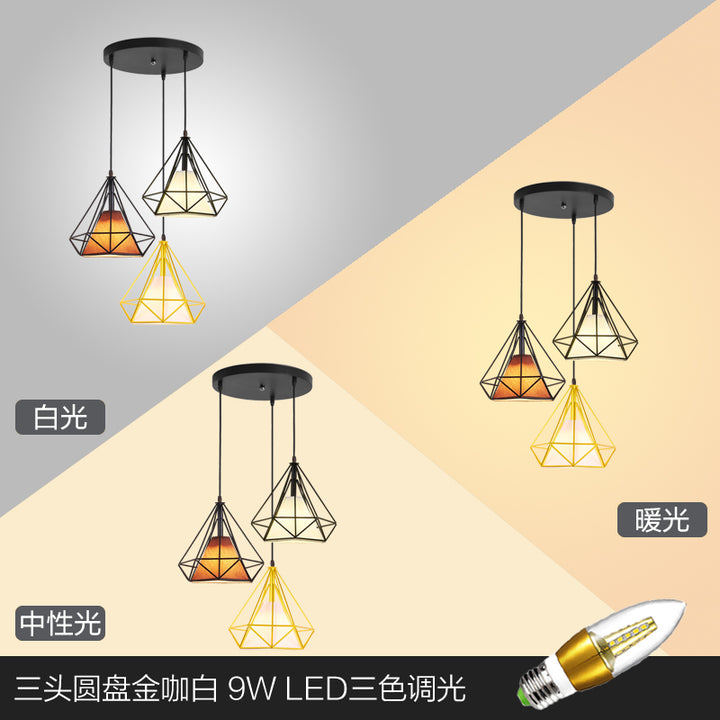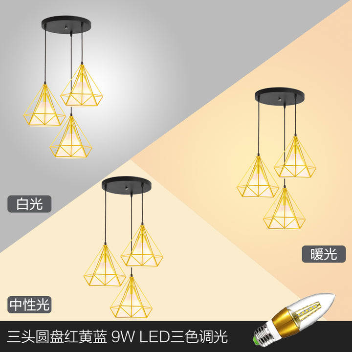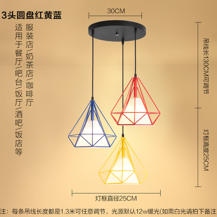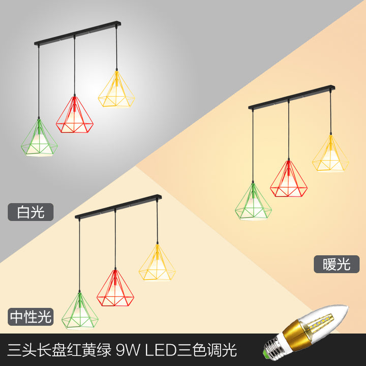 Nordic modern simple restaurant chandelier creative three-head store commercial lighting art diamond wrought iron bar lighting