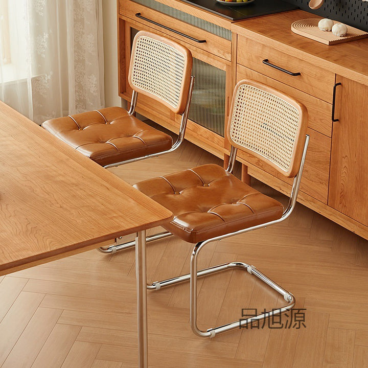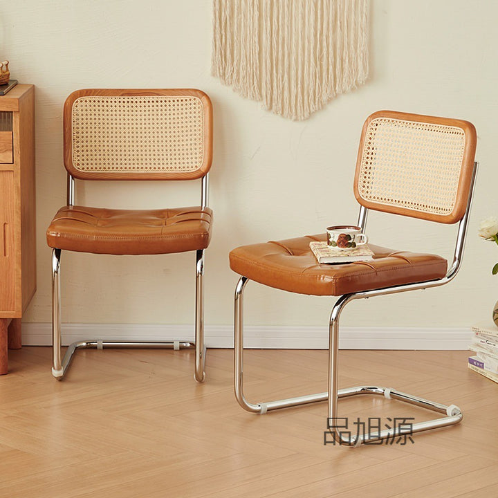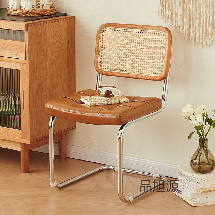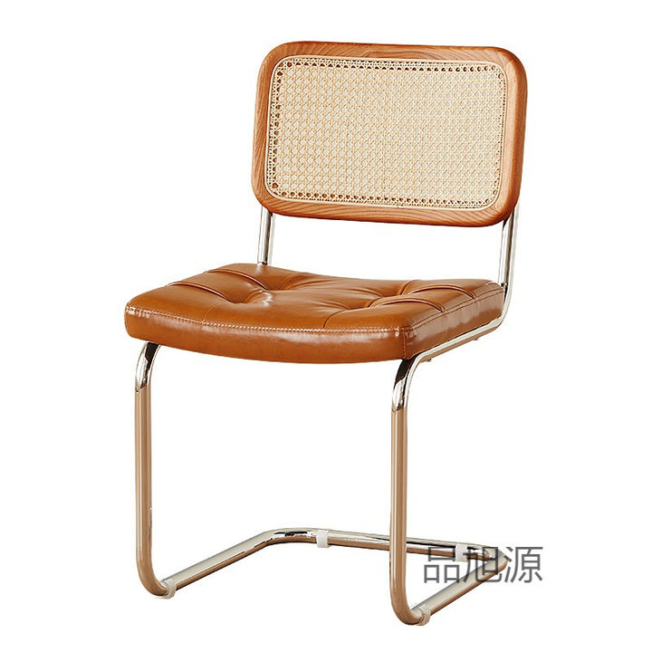 Nordic rattan backrest household simple stainless steel color bow dining chair medieval restaurant cafe casual chair 04