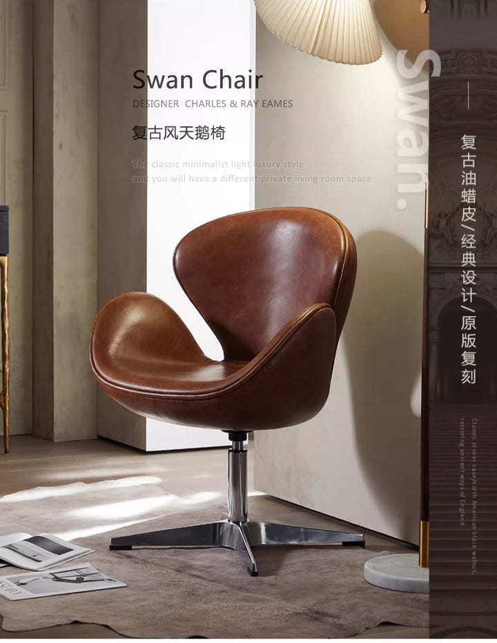 Nordic retro oil wax leather single sofa egg chair eggshell modern designer furniture casual creative negotiation chair