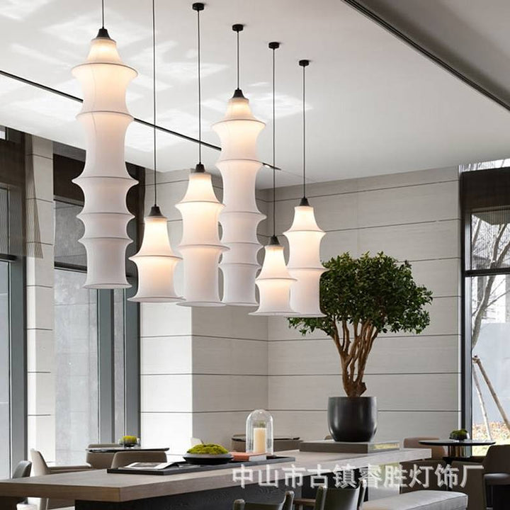 Nordic silk fabric bamboo chandelier model room tatami creative long shape personalized bamboo long lantern new Chinese style