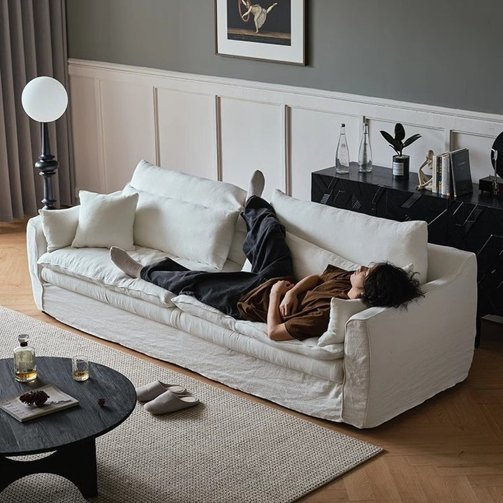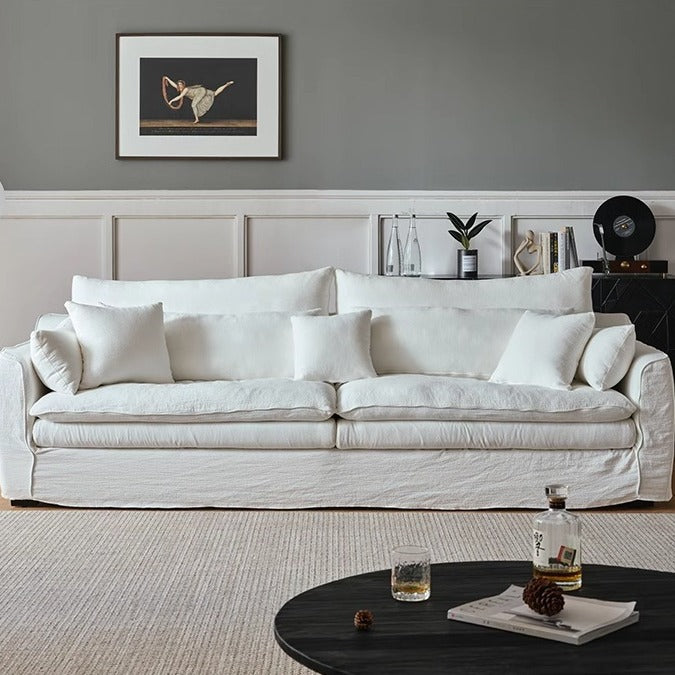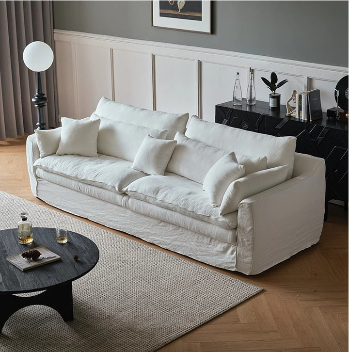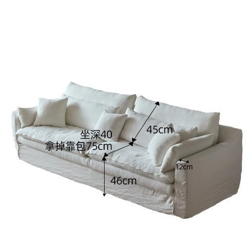 Nordic small apartment living room fabric removable sofa wabi sandy wind straight linen cloud down fabric sofa