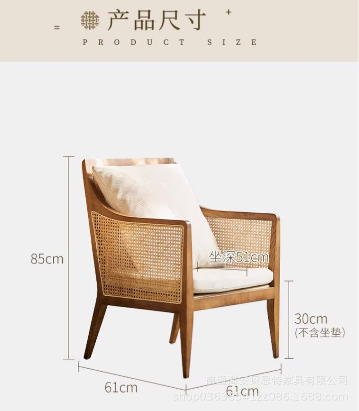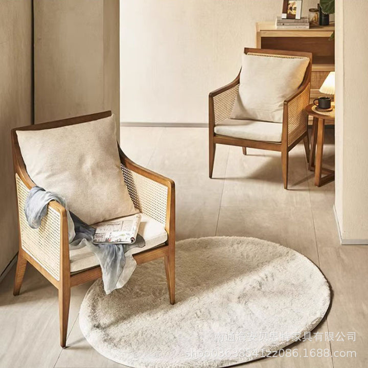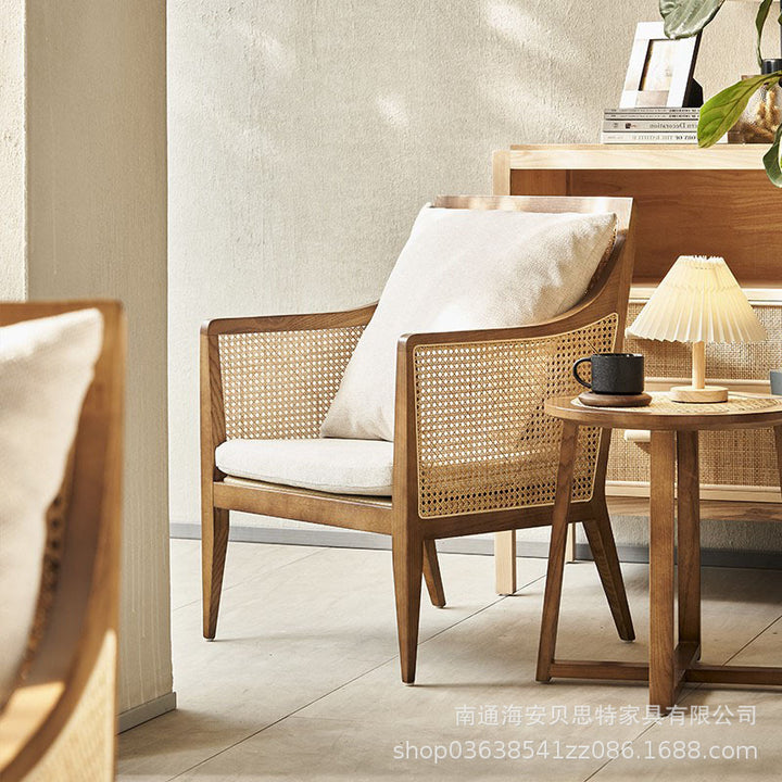Nordic small apartment living room solid wood single sofa chair ash wood Indonesian real vine balcony leisure chair lazy sofa