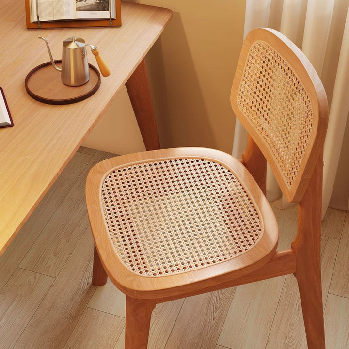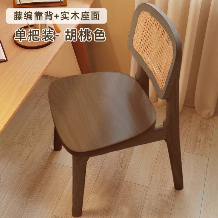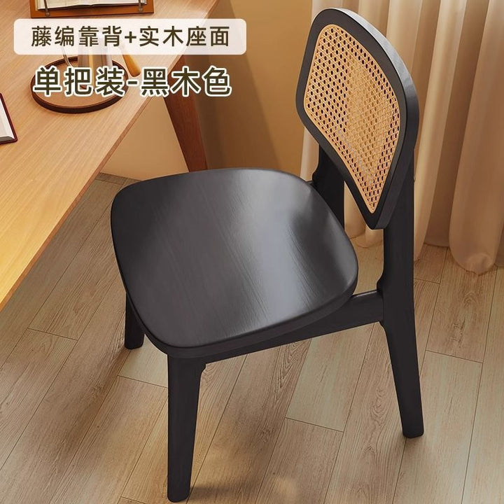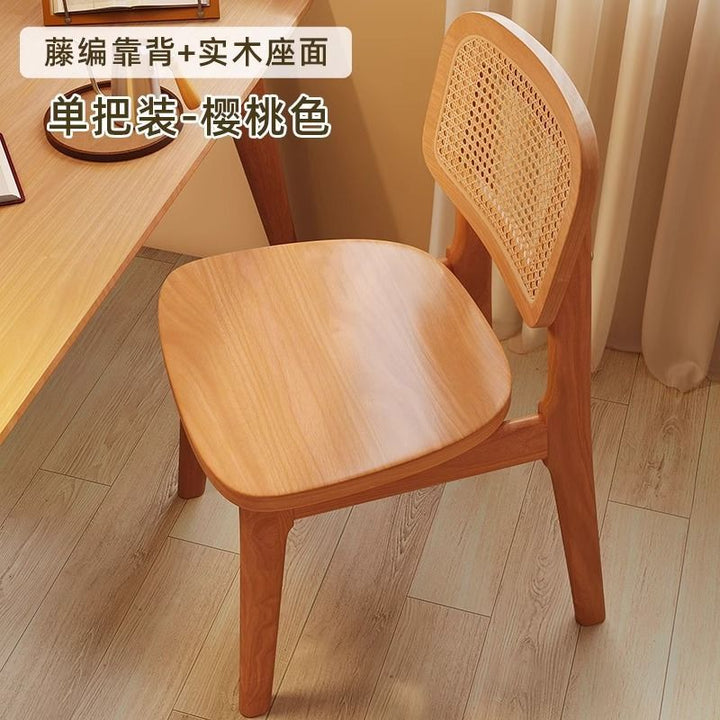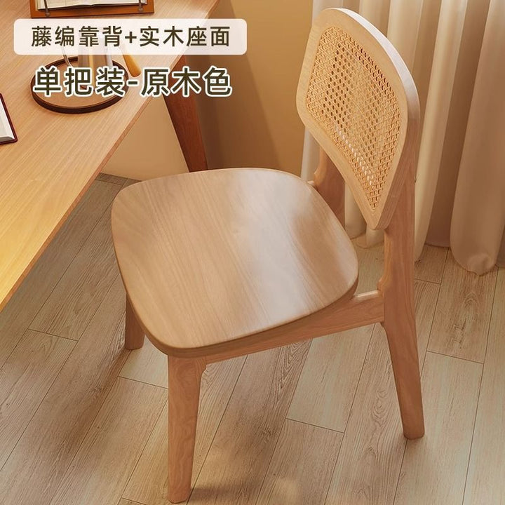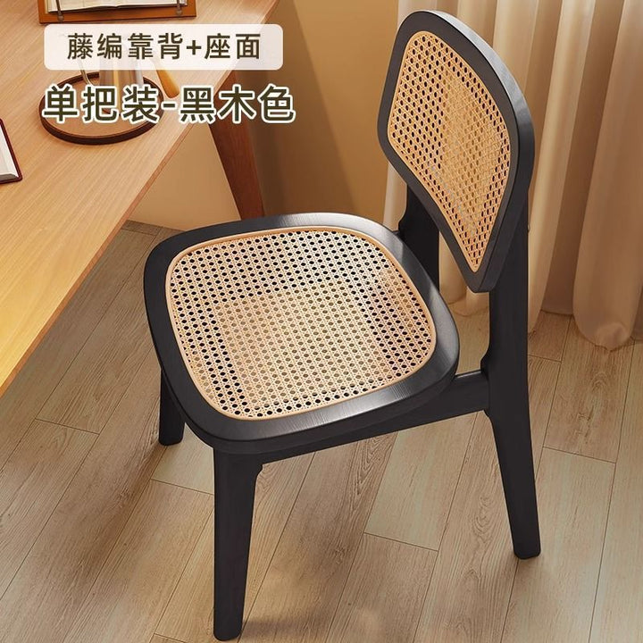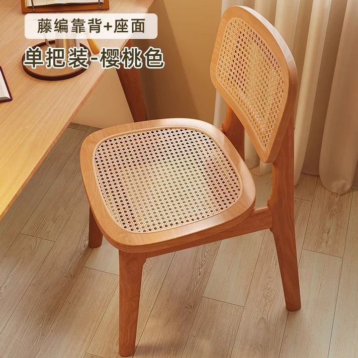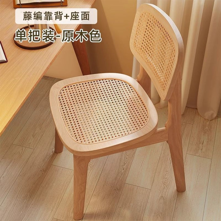 Nordic solid wood chair medieval rattan dining chair household wabi Japanese style home rattan chair retro designer dining table and chairs